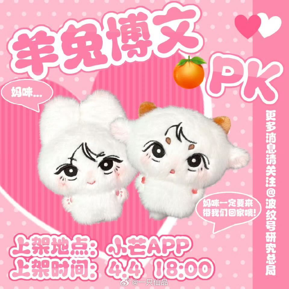 从舞台上闪闪发光的杨博文,到掌心软萌的羊兔宝宝,是粉丝与偶像双向奔赴的温柔「羊兔博文」以杨博文为原型,用羊的灵动与兔的软萌,还原他舞台下的治愈感与舞台上的爆发力。每一根绒毛都藏着爱意,每一个细节都满是心意,是可以随身携带的陪伴,是专属于杨博文粉丝的收藏。4月4日18:00-22:00 小芒APP,和杨博文一起,把两只小可爱带回家,用销量为他应援杨博文周扬杨博文我们的少年时代2
