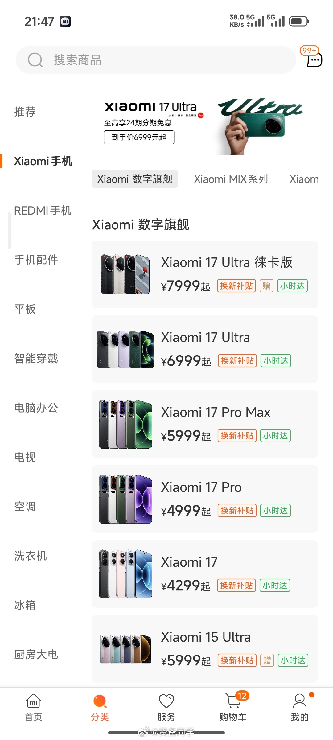 小米这边,只有小米 17 Ultra 的 1T 版本,或者徕卡版本是符合 7000 块以上的。