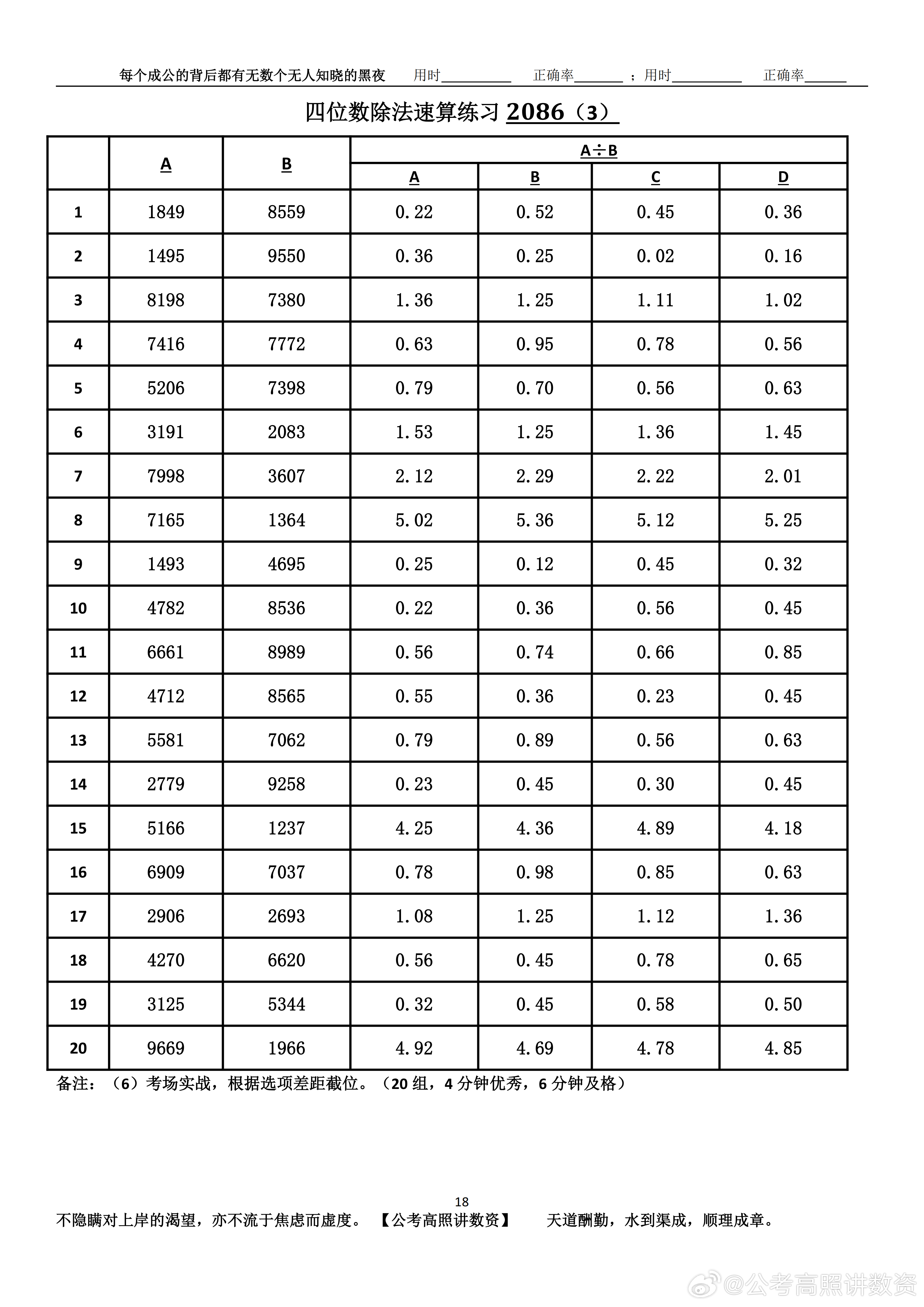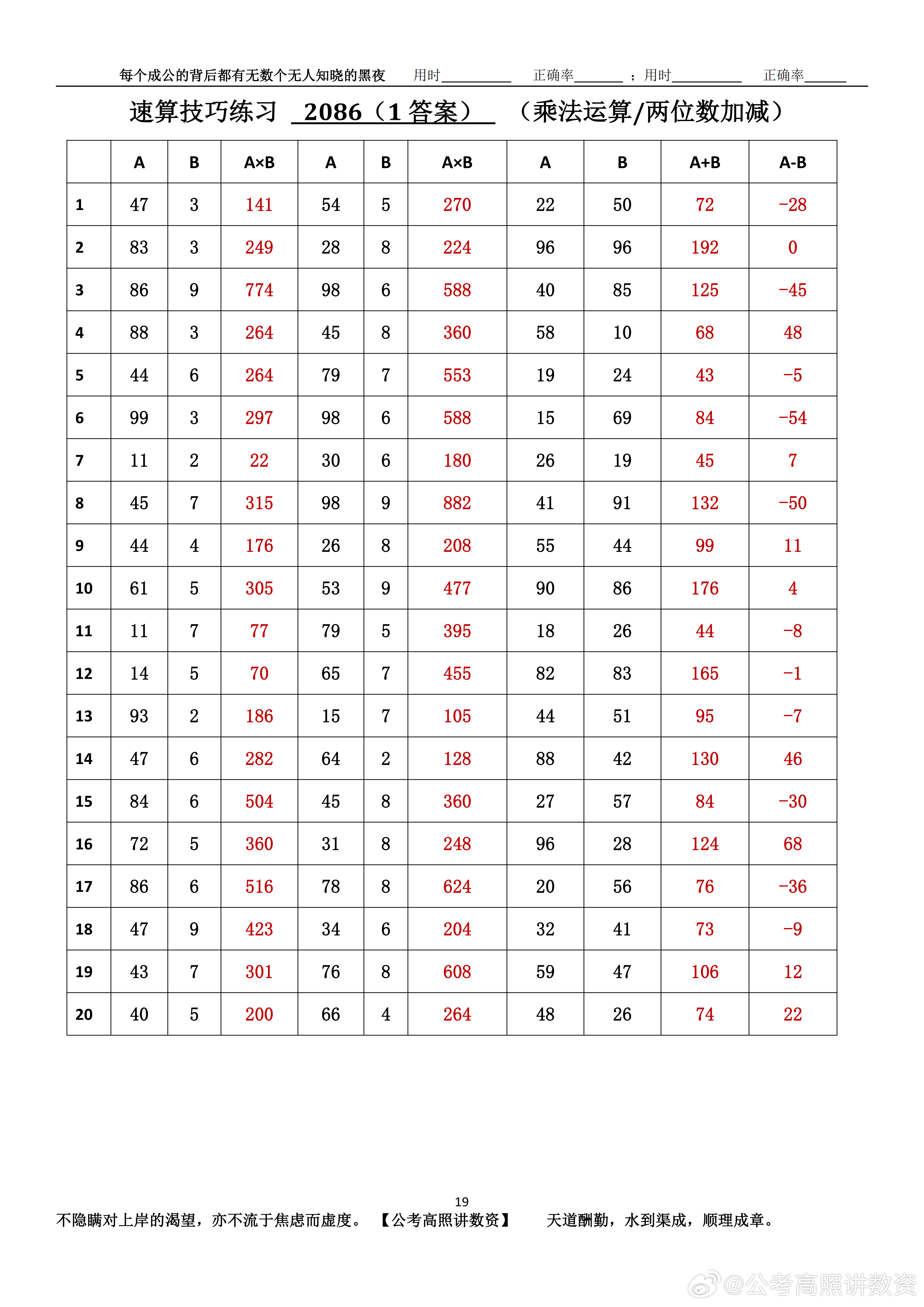 跟着高照练速算决战公考 速算练习2086相信自己,努力学习。速算链接汇总:网页