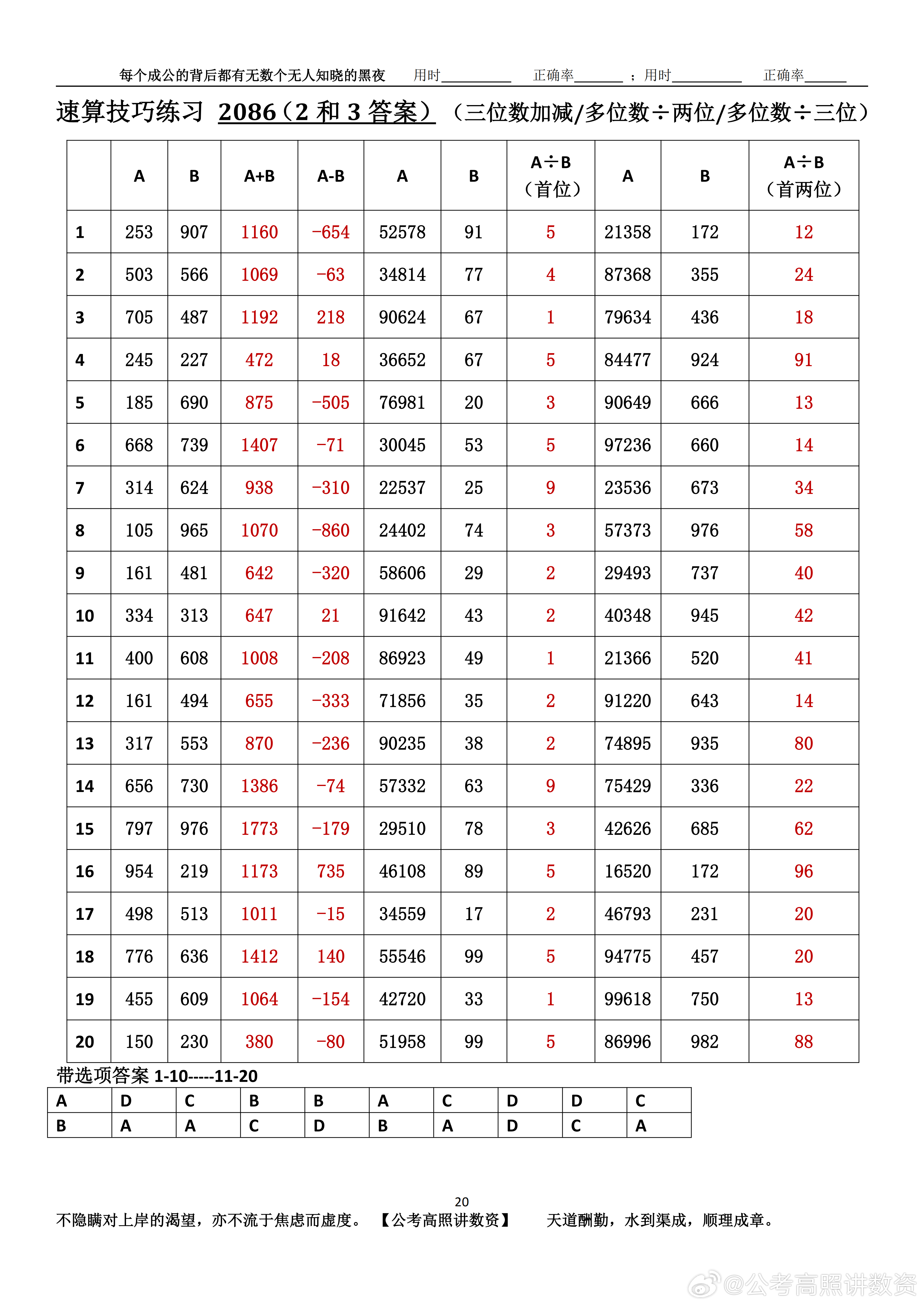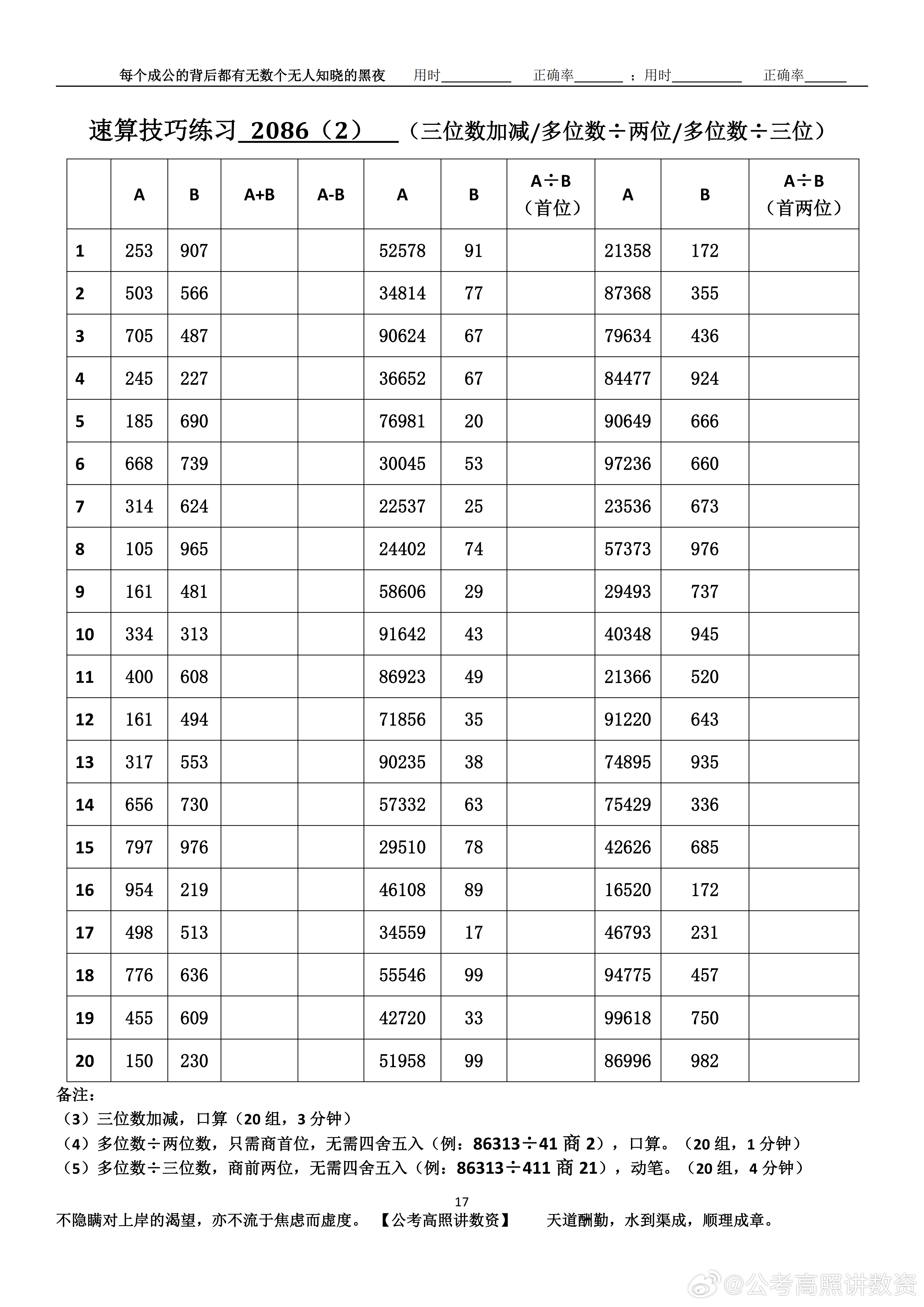 跟着高照练速算决战公考 速算练习2086