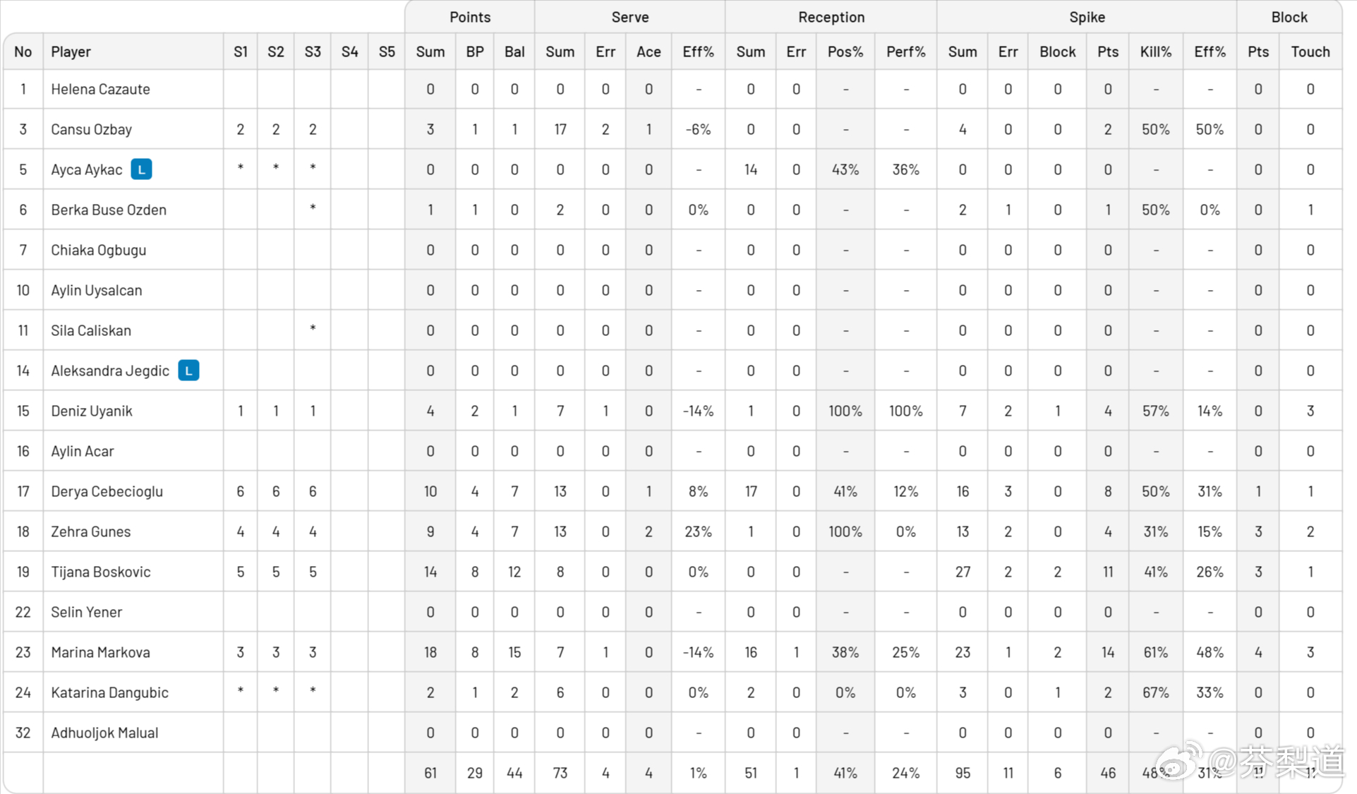 【女排土耳其杯半决赛瓦基弗零封加拉塔萨雷王媛媛5分】国际排坛战报速递中国排球留