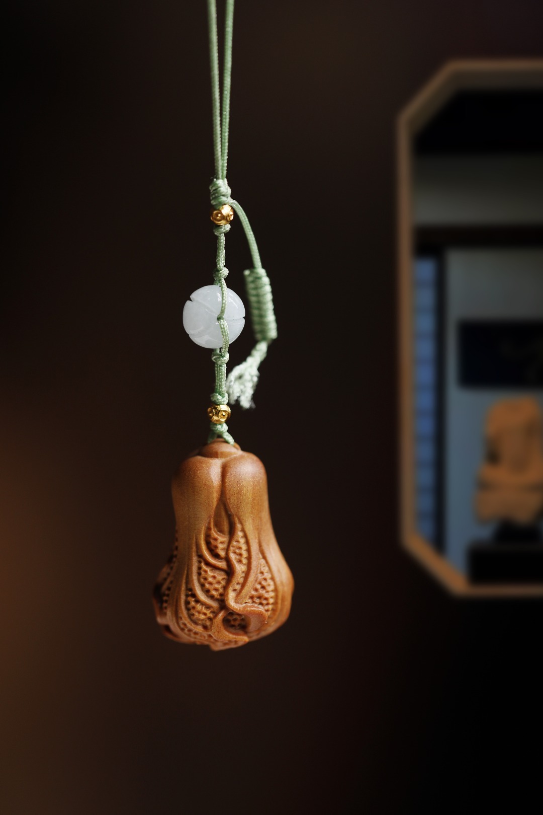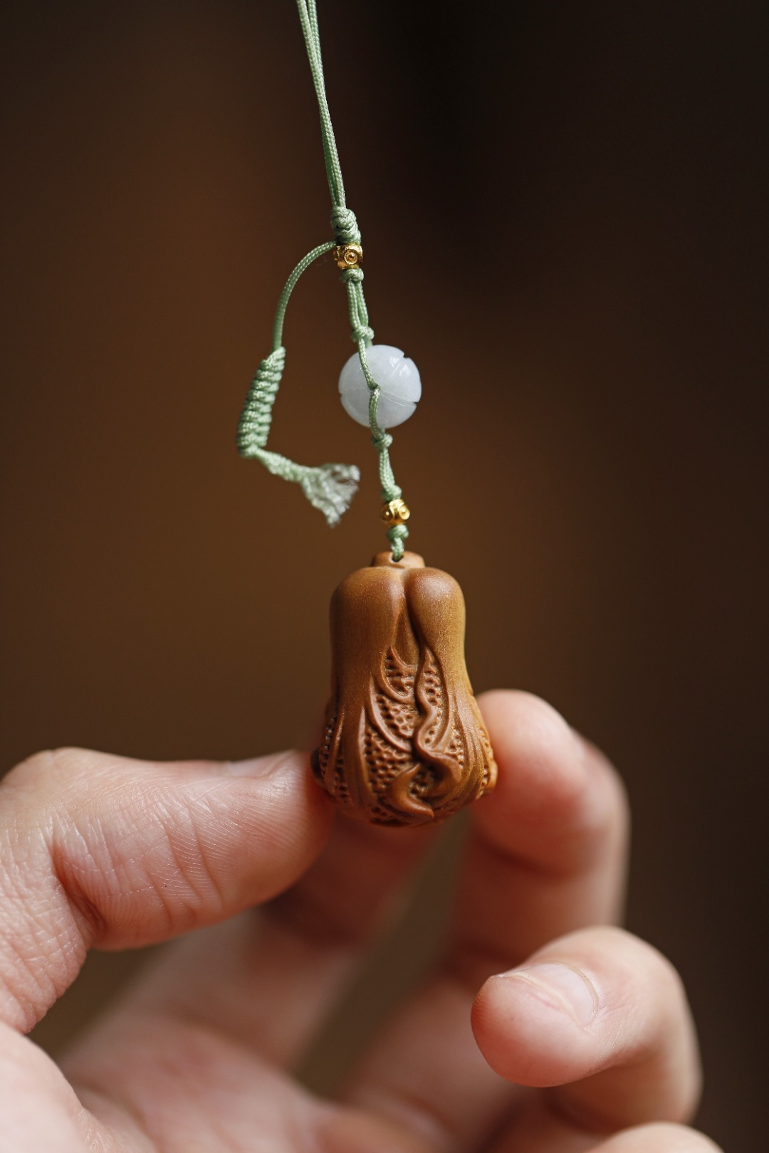 老山檀香 | 百财 钥匙扣老山檀香光滑、致密,香气醇正,雕饰小白菜,寓意百财聚来