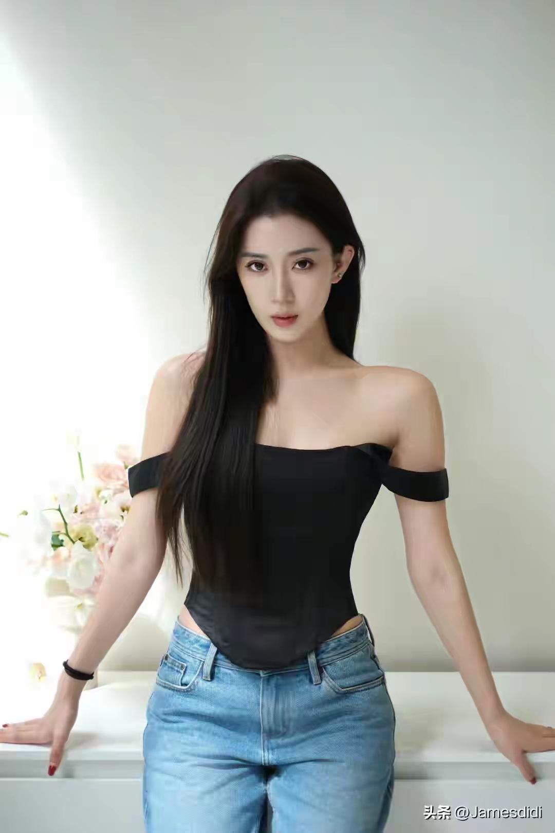 温柔甜美的少女,黑发飘飘,微笑动人