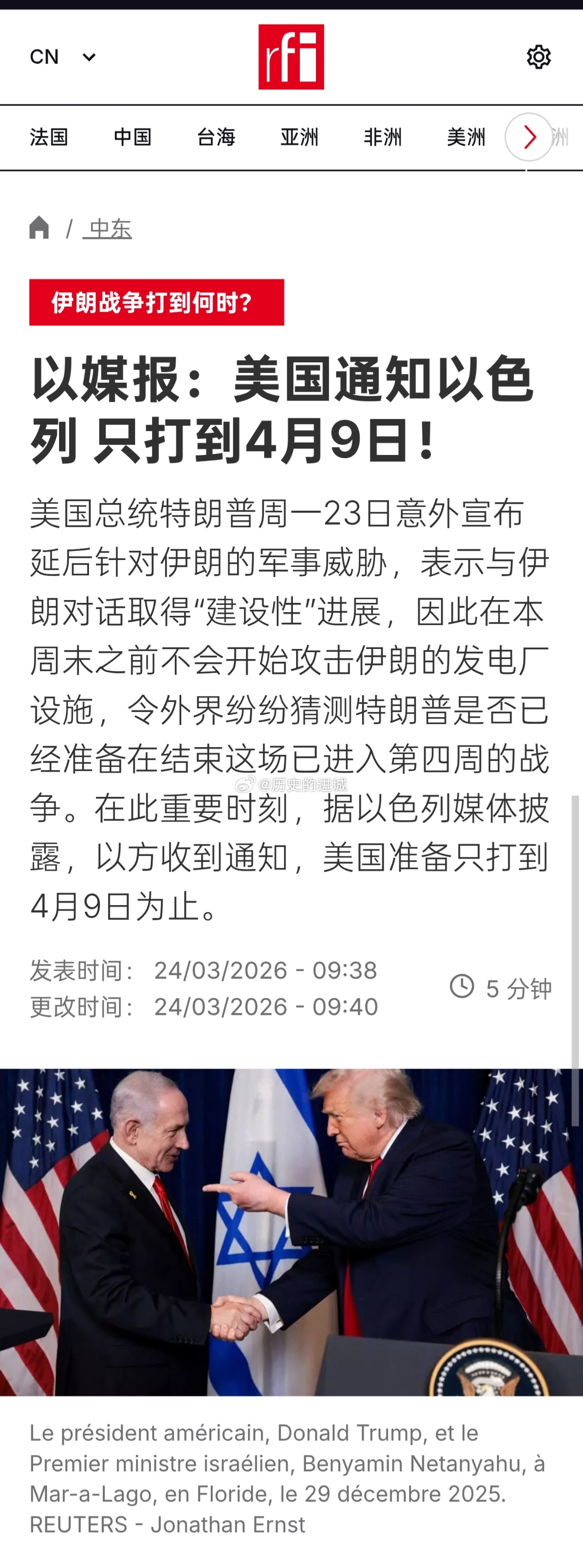以色列被打穿了以色列新闻媒体Ynet在北京时间周二24日清晨报道说,一名以色列官员透露,白宫已将4月9日设定为结束战争的目标日期,为持续的战斗与谈判留下约三周的时间。为何是4月9日?这名以色列官员解释说,如果真在4月9日或之前结束战争,特朗普将有望在以色列独立建国纪念日之时(4月21至22日)访问以色列,并获颁“以色列奖”。海外新鲜事