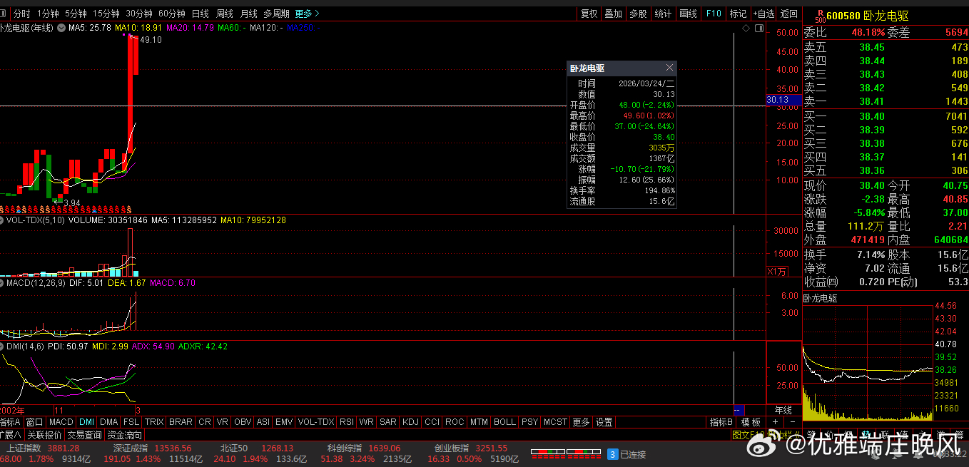 11、600580 卧龙电驱 38.40 -5.84% -4.71亿