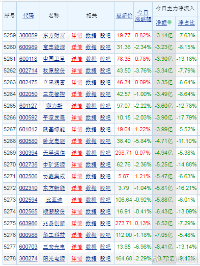 1、主力资金:逃逸前三