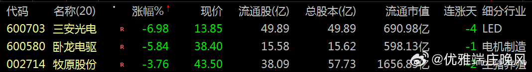 600703 三安光电600580 卧龙电驱002714 牧原股份