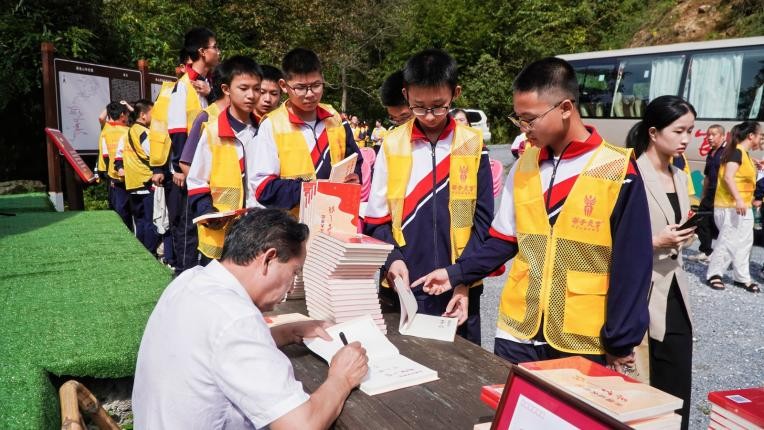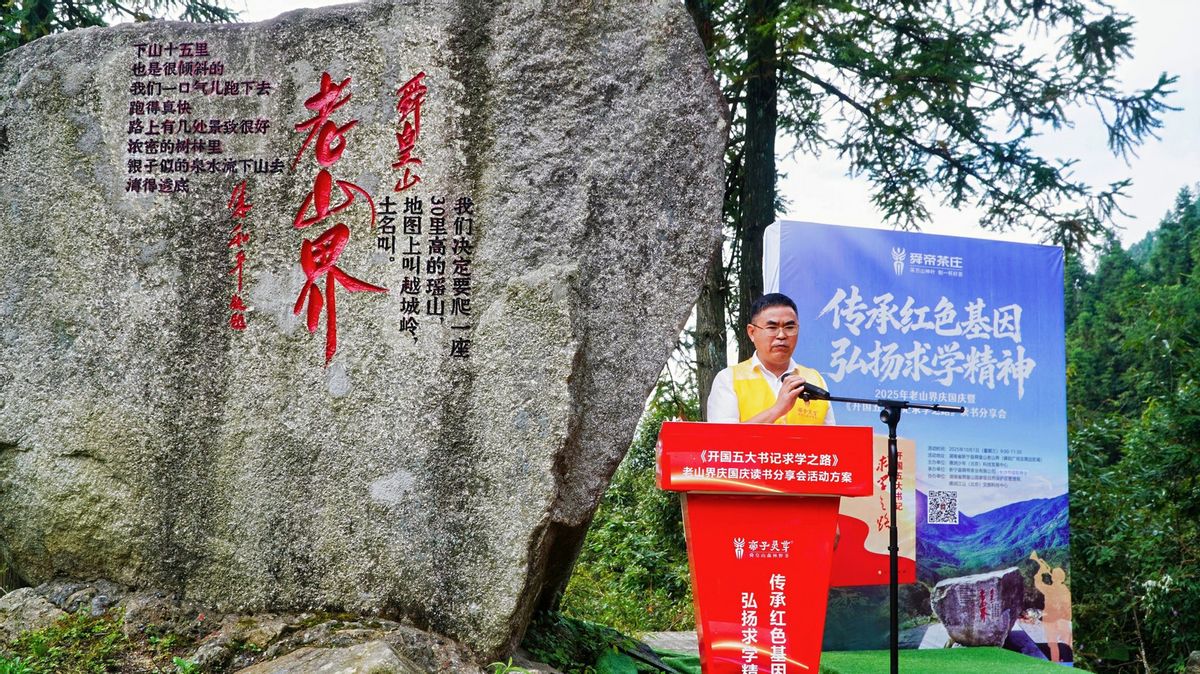 【湖南讯】(文/陈艾阳)10月1日,举国同庆。在素有“湖南野茶之乡”美誉的新宁县舜皇山老山界——这片承载着厚重历史与红色记忆的热土上,一场以“传承红色基因 弘扬求学精神”为主题的《开国五大书记求学之路》老山界庆国庆读书分享会隆重举行。本次活动由德润少年(北京)科技发展中心主办,长沙市邵阳商会、新宁县舜帝茶业有限公司承办,湖南省舜皇山国家级自然保护区管理局、德润江山(北京)文旅科技中心协办,吸引了众多嘉宾与新宁一中师生齐聚一堂,共同在书香与红色文化的交融中汲取奋进力量。