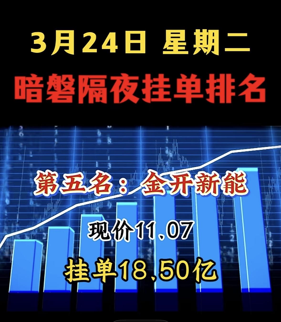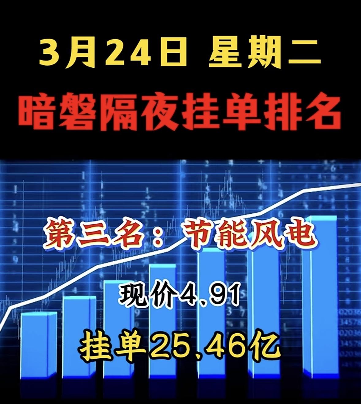 3月25日周三暗盘隔夜挂单排行榜出炉 今天给大家推荐韶能股份,现价8.06元,挂单8.71亿。2026年3月24日,它开盘报7.50元,盘中最低7.33元,最高触及8.06元,收报8.06元,涨幅9.96%,实现5天4板。当日成交额22.45亿元,成交量285.86万手,换手率27.24%,流通市值84.6亿元。 从资金流向看,当日主力资金净买入2.77亿元,特大单净买入1.92亿元,大单净买入0.85亿元。和前一日比,两日累计主力净买入4.75亿元,资金持续流入,做多动能足。这股近期表现这么猛,值得关注一波!
