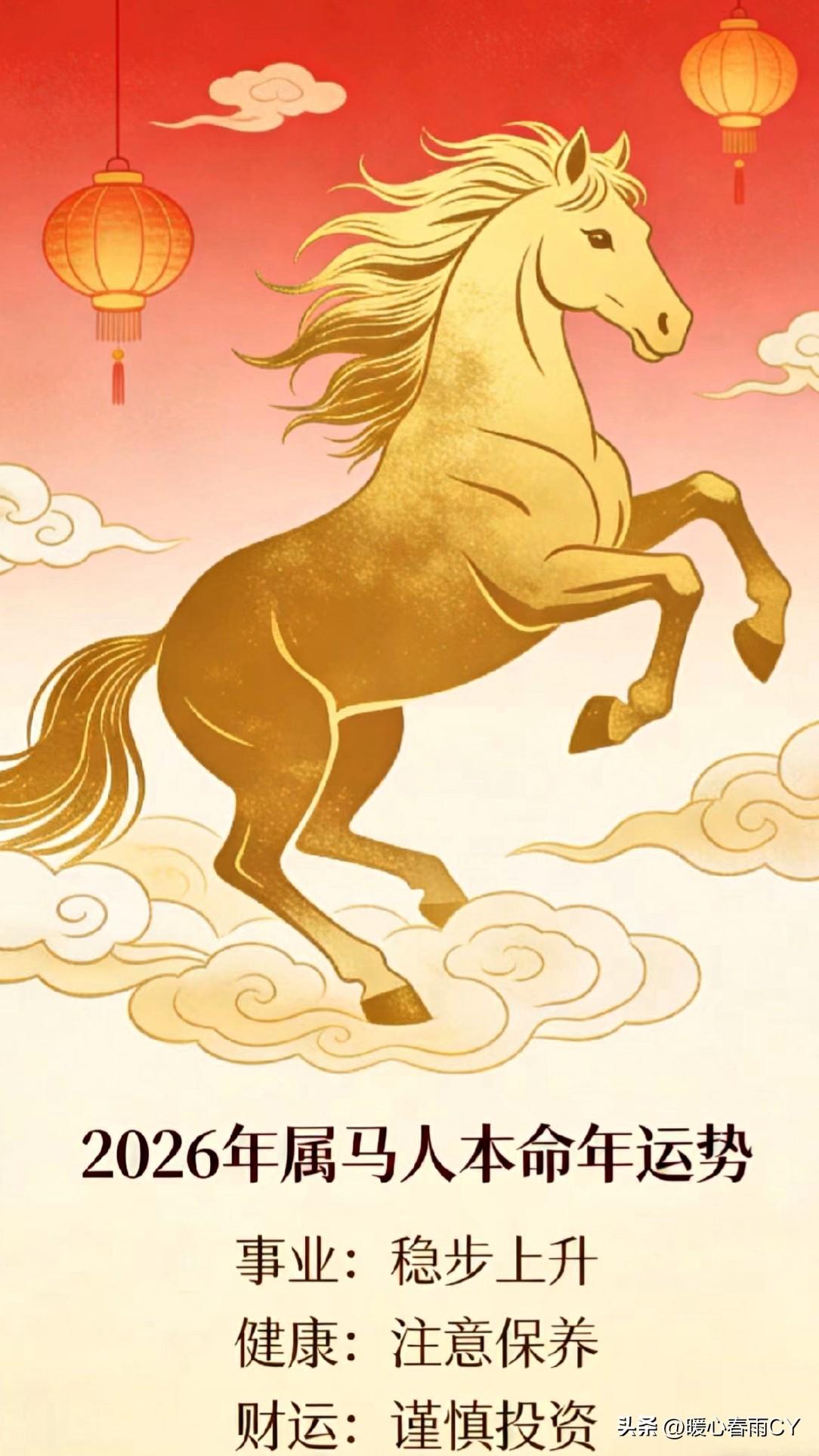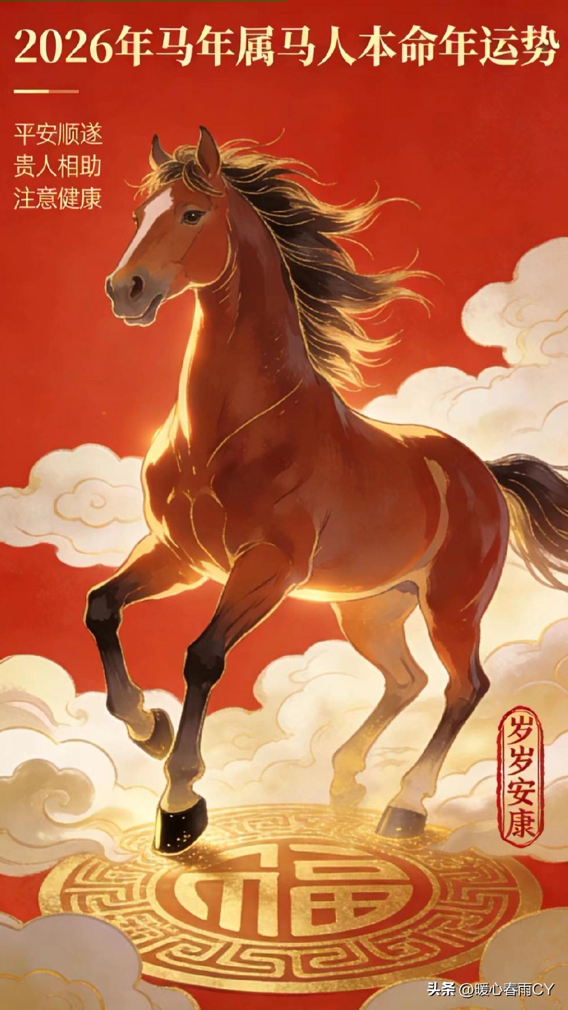 属马人留意:1966年出生,今年是双重本命年! 1966年丙午年出生的属马人,2026年同样是丙午年,这可是六十年一遇的双重本命年。 天干地支双双重合,再加午午自行,气场冲击远比其他属马人更为明显得多,所以在年初的三个月,总会感觉格外疲惫,诸事都不太顺利,心情波动也很大。 到了四月,虽已迎来转机,运势逐步回暖,不过农历五月仍会有一波小起伏,凡事多一份耐心,少一份冲动,守住钱财、稳住心神,行事低调些,开车时注意安全。 熬过这段考验期,下半年便会一路向阳,越来越好,往后的日子也都是坦途! 天南地北大拜年 我要上精选-全民写作大赛 本命年 属马人