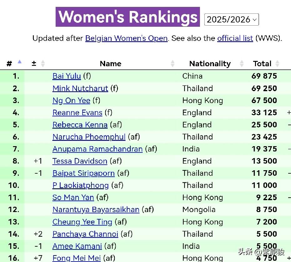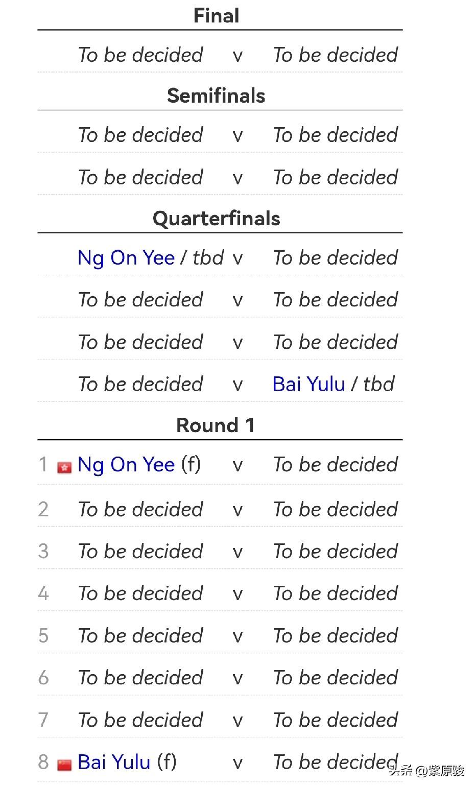 英国女子公开赛3月27日-29日将在英格兰沃尔索尔的兰迪伍德斯诺克俱乐部进行,共有30名球员参加,其中包括白雨露、吴安仪在内的6名中国球员。卫冕冠军吴安仪和世界排名第一的白雨露自动晋级淘汰赛。 英国女子公开赛是排名赛,参赛的28名球员先分成7个小组,进行小组循环赛,小组前两名晋级。14名晋级者与吴安仪和白雨露共16人一起参加第一轮淘汰赛。 参赛球员还包括世界排名第二的闵克·旺哈鲁泰、“台球女皇”瑞安·埃文斯,以及瑞贝卡·肯娜和老将特莎·戴维森等。除白雨露以外的其他5名中国球员都来自中国香港。 第一轮比赛,卫冕冠军吴安仪分在上半区,白雨露分在下半区。 目前女子世界排名榜上,排名第一的白雨露的积分仅比排名第二的闵克·旺哈鲁泰多625分,本赛季需要保级的白雨露要想保住第一的位置,必须全力以赴。 英国女子公开赛第一轮和1/4决赛采用5局3胜,半决赛和决赛采用7局4胜。淘汰赛前两轮因为是5局3胜的超短赛制,容错空间很小,因此球员进入状态要早。去年白雨露就在1/4决赛中0-3输给瑞贝卡·肯娜,失去夺冠机会。 中国球员,加油!