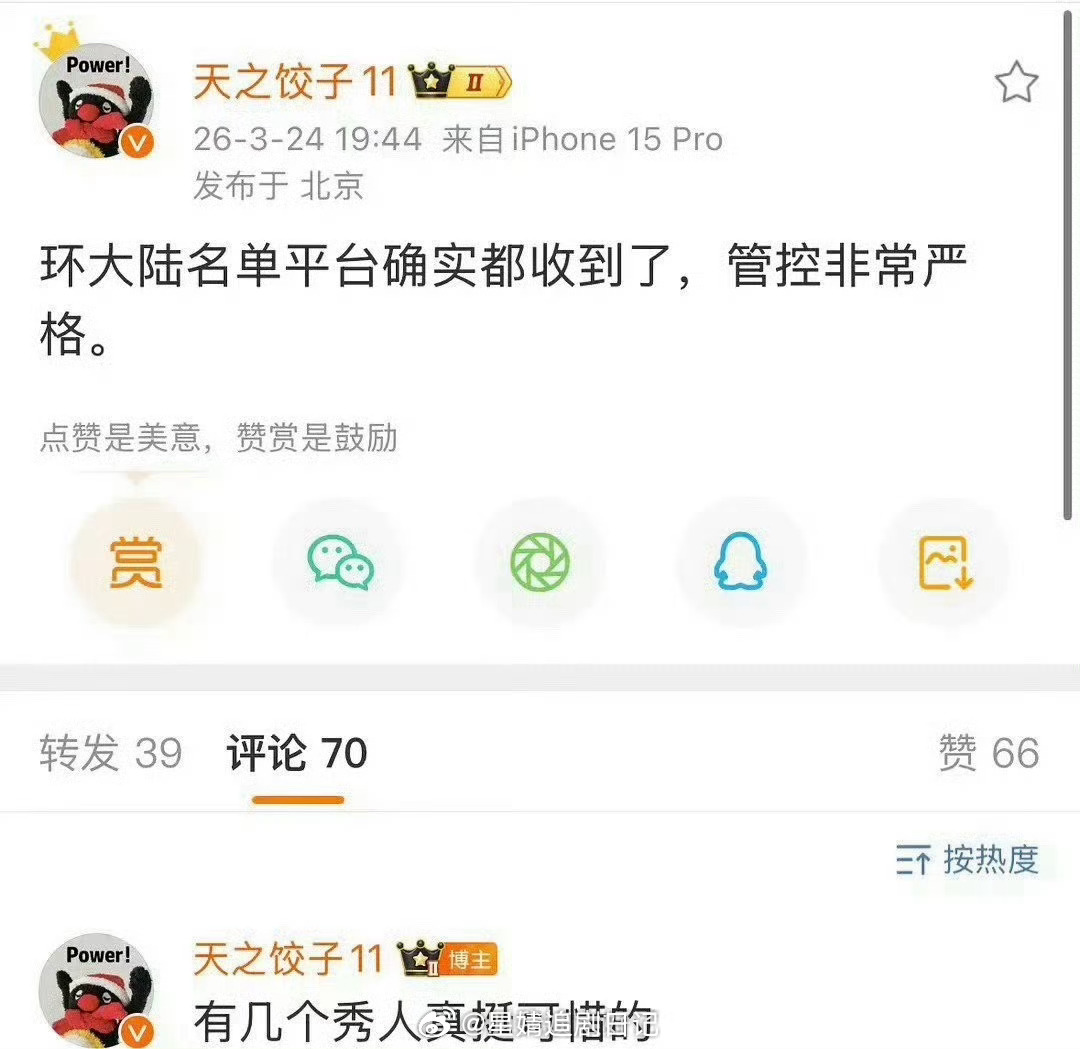 禁环大陆到底是真是假?6.1为什么还有商务 都怪田栩宁 吃到🍉6.0都被叫停了,少了线下变现的渠道,这下只能靠商务杂志了~ 环大陆真完蛋了,一个不留…就是因为田栩宁,环大陆才加码的现在哪怕小配角都不让出来了,怎么可能名单会没有他,养蛊要不得哦 这次是真的很严格,《初三的六一儿童节》副CP短剧已经不能播了,其他人后续商务也不能接。完蛋了 不过,这一点也不影响割韭菜,🈲商务才能杜绝根本