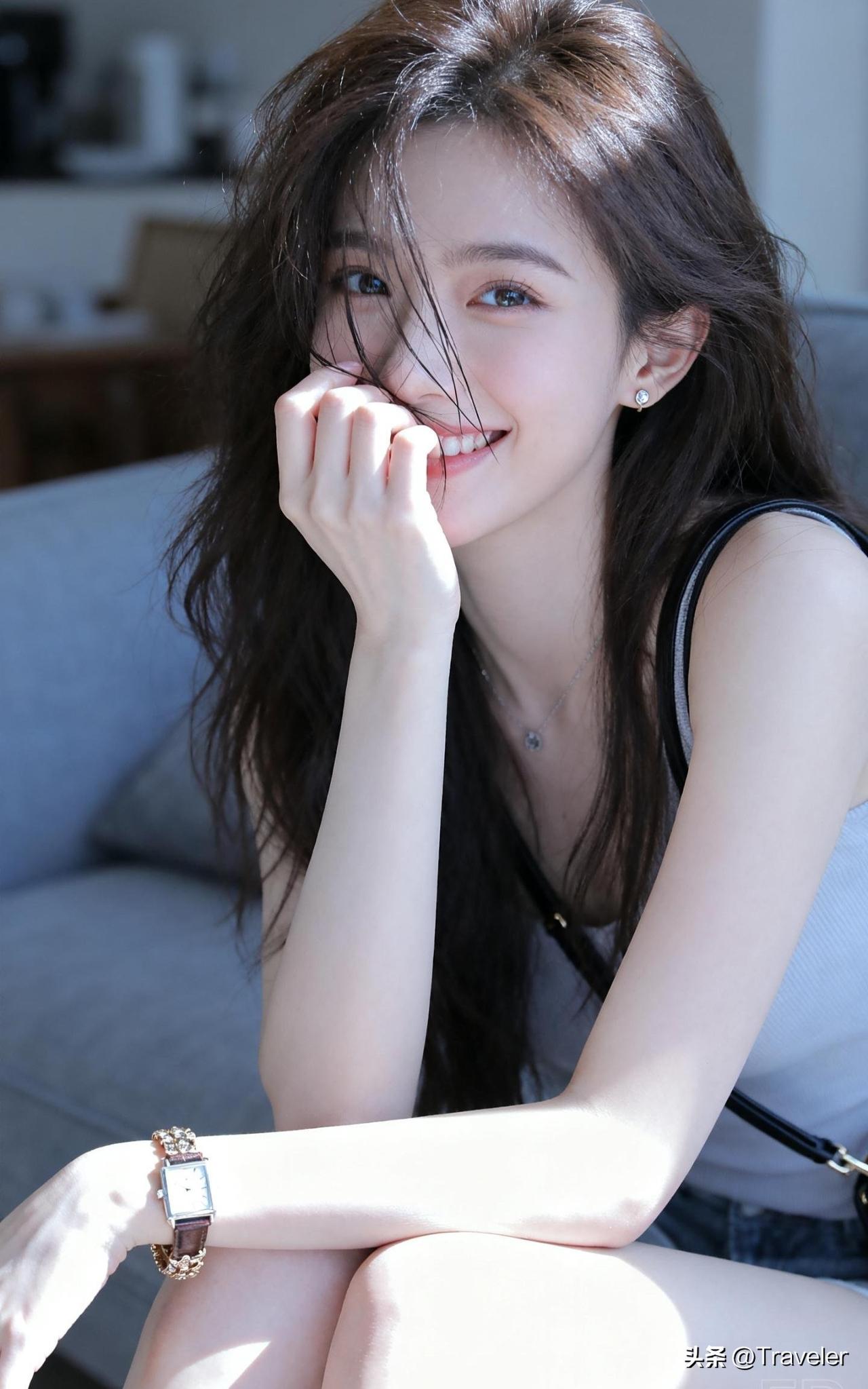 阳光下的甜美少女,微笑如春风般温暖。
