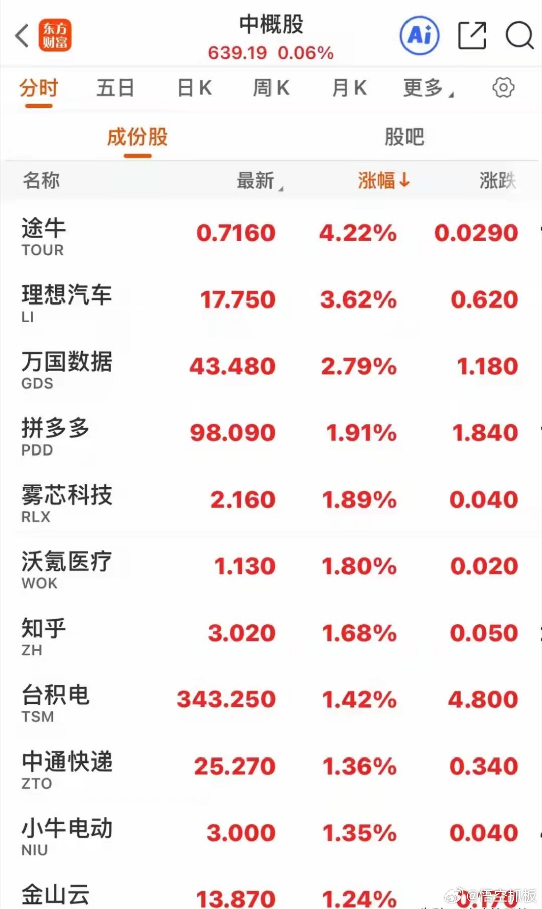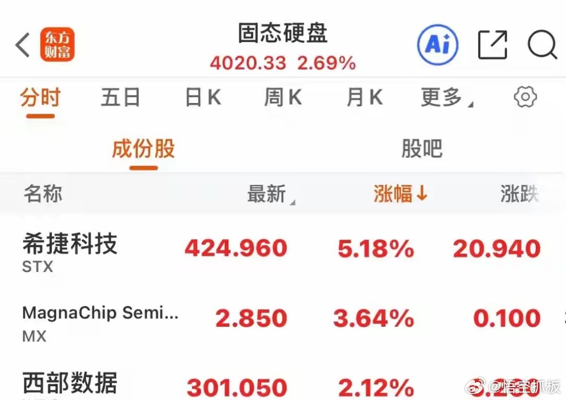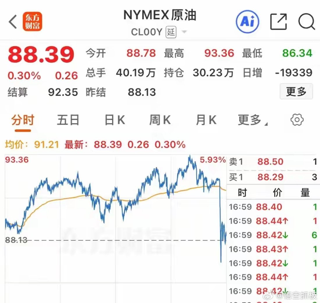 原油尾盘直线跳水,黄金尾盘直线拉升,美股下挫,固态硬盘大涨!原油周一大跌9.52%后,昨天全天大多数时间都在高开高走中运行,盘中最大涨幅5.52%,但尾盘不知道发生了什么,突然直线跳水下跌,一度从大涨超5%到下跌1.22%,跌破90美元/桶,最终收盘上涨0.30,收于88.39美元/桶。布伦特原油高开高走盘中上涨4.93%,尾盘直线跳水后,跌破100美元,一度下跌0.68%,,最终收盘拉回一点,但依然下跌了0.13%,收于95.89美元/桶。而与此同时已经下跌8个交易日的黄金突然直线拉升,昨天国际黄金开盘后小幅上涨,但一个小时后就跳水下跌到了近2%,后虽然拉回,但大多数时候震荡在下跌附近,尾盘原油跳水的时候,它突然大幅拉升,从下跌0.65%一度拉涨至1.92%,最终收盘小幅上涨0.30%。昨晚美股三大指数全线下跌收盘,纳斯达克开盘跌0.98%,盘中有过拉升,但没有红盘,最终收盘跌0.84%,标普开盘下跌0.85%,盘中拉升上涨0.36%,尾盘被砸了下去后小幅下跌0.37%,道琼斯低开高走盘中上涨0.45%,收盘下探后下跌0.18%。固态硬盘、储存芯片股表现不错,希捷科技低开高走收盘于全天最高点,最终大涨5.18%,MX开盘下跌2.18%,盘中大涨5.65%、收盘下探后上涨3.64,西部数据低开高走涨2.12%,德洲仪器涨3.18%。美股领涨板块:炼油概念涨4.30%,生物质量能涨4.16%,传感器涨2.81%,固态硬盘涨2.69%,光伏太阳能涨2.59%,稀有金属涨2.39%,油气开采涨2.38%,工业4.0涨2.30%,MCU芯片涨2.10%,卫星通信涨1.97%,能源涨1.83%。跌幅居前的板块:纳米跌5.05%,干细胞跌4.66%,低空经济跌4.41%,飞行汽车跌4.08%,激光雷达概念跌3.98%,数字货币概念跌3.22%,搜索引擎跌3.13%,英伟达概念跌2.79%,云计算跌2.74%,社交媒体跌2.44%,软件外包跌1.86%,量子科技跌1.69%,旅游观光跌1.31%。大型科技股英伟达波动不大跌0.25%,苹果波动更小涨0.06%,特斯拉涨0.57%,谷歌低开低走跌3.28%,股票近期从349跌到了289,期间跌幅18%,微软低开低走跌2.68%,近期微软走势很弱,已从488跌到372,跌幅24%,近12个交易日下跌了11个交易日。亚马逊低开低走跌1.38%,近期从248跌到了207,跌幅17%,Meta低开低走跌1.84%,近期该股从743跌到了592,跌幅21%,博通跌1.31%,超微半导体涨1.33%,英特尔涨0.11%。中概股指数小幅上涨0.06%,途牛涨4.22%,理想汽车涨3.62%,万国数据涨2.79%,拼多多涨1.91%,雾芯科技涨1.89%,金山云涨1.24%,新东方涨0.45%。声网跌3.67%,云集跌2.11%,世纪互联跌1.78%,百度跌1.75%,爱奇艺跌1.60%,蔚来跌1.55%,网易跌1.09%,途牛跌1.00%,搜狐跌0.75%,阿里巴巴跌0.46%,京东跌0.25%。A股昨日普涨后今日怎么走?希望保持稳健风格!