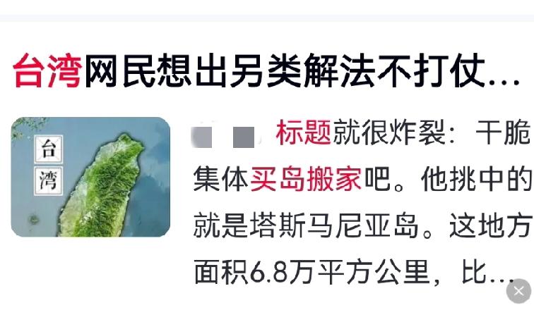 玩笑藏真意!台湾“买岛搬家”闹剧,道尽统一大势 台网热议“台独众筹搬去澳洲塔斯马尼亚岛,将台湾归还大陆”,看似荒诞的提议,戳破岛内数十年统独对立的焦虑。该岛面积大于台湾,却难容两千多万同胞,巨额成本、澳洲态度、移民安置皆是无解困局。 更有网友畅想台海海底隧道贯通,高铁直通台北,两岸同胞轻松相聚逛夜市。领土主权从非交易筹码,台湾自古便是中国不可分割的一部分,分裂行径注定徒劳。 这场网络玩笑,折射出民众厌倦对立、期盼安宁的心声。历史洪流滚滚向前,祖国统一是民心所向、时代必然,任何妄想逃避都终将被时代摒弃。 对此,你有何认知度? 台湾 统一大势不可逆转 两岸一家亲