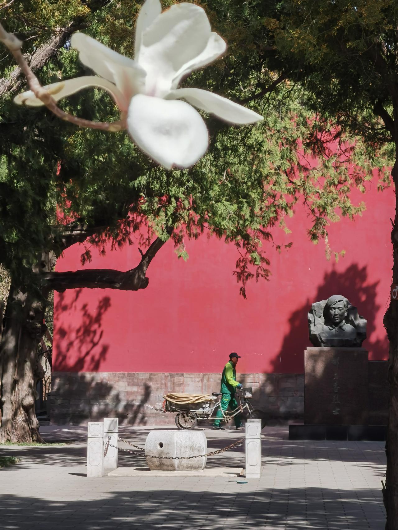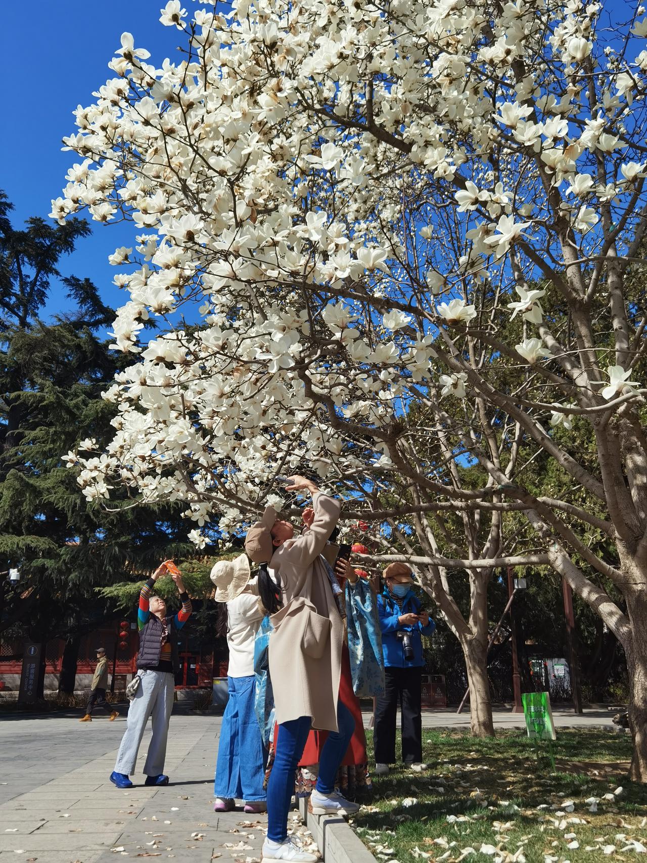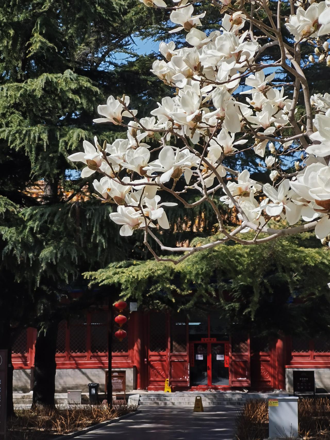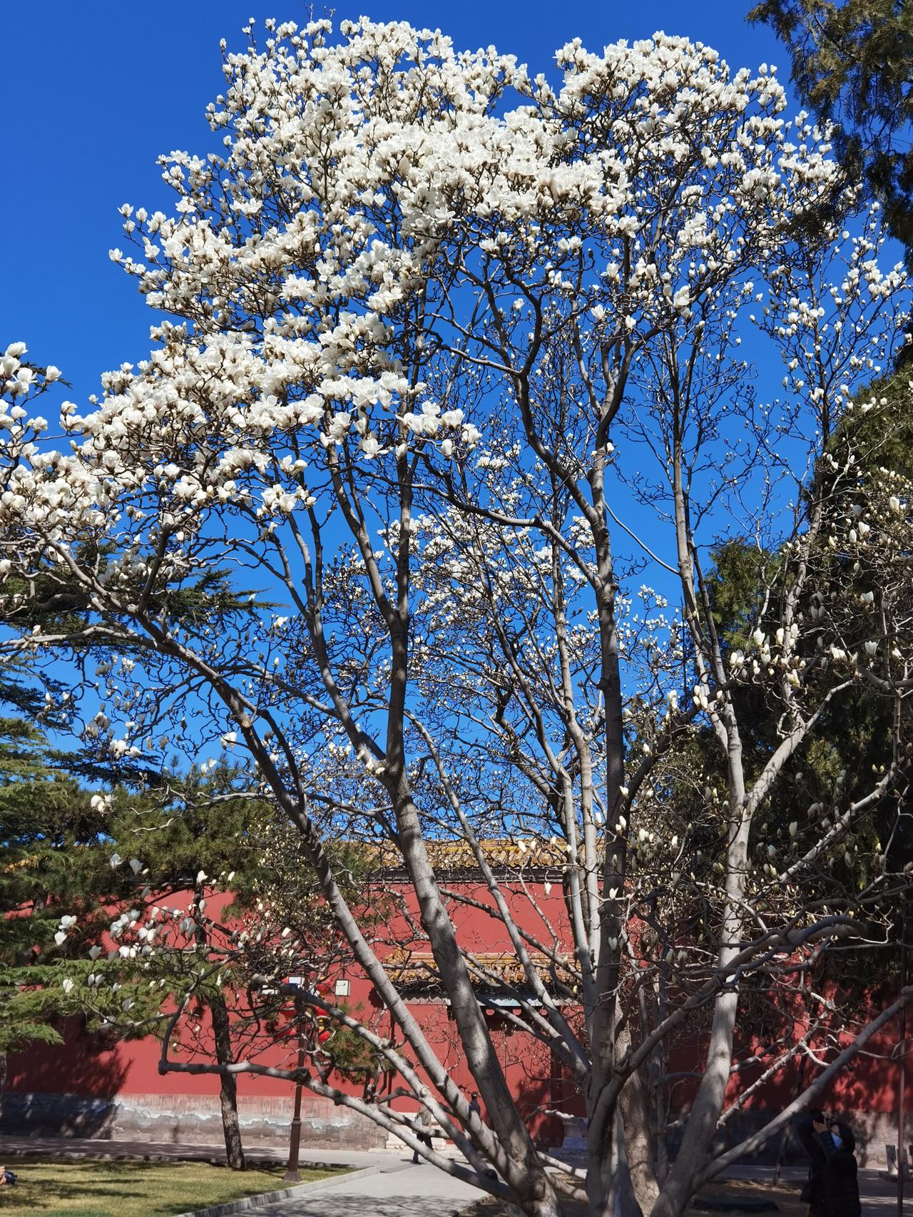 北京太庙门票2元,简直太便宜了,真的是国内无双。 眼下正是北京玉兰花盛开季,太庙是一个价廉物美人少的赏花地。玉兰花集中在太子林区域。这里盛开的玉兰与红墙、翠柏交相辉映。拍出的片子很有皇家气息,真的很出片。 建议大家从南池子大街东门进 ,错开广场人流高峰,参观完毕从西门出,经过故宫午门接着参观中山公园 ,那里也是一个很好的赏花地。