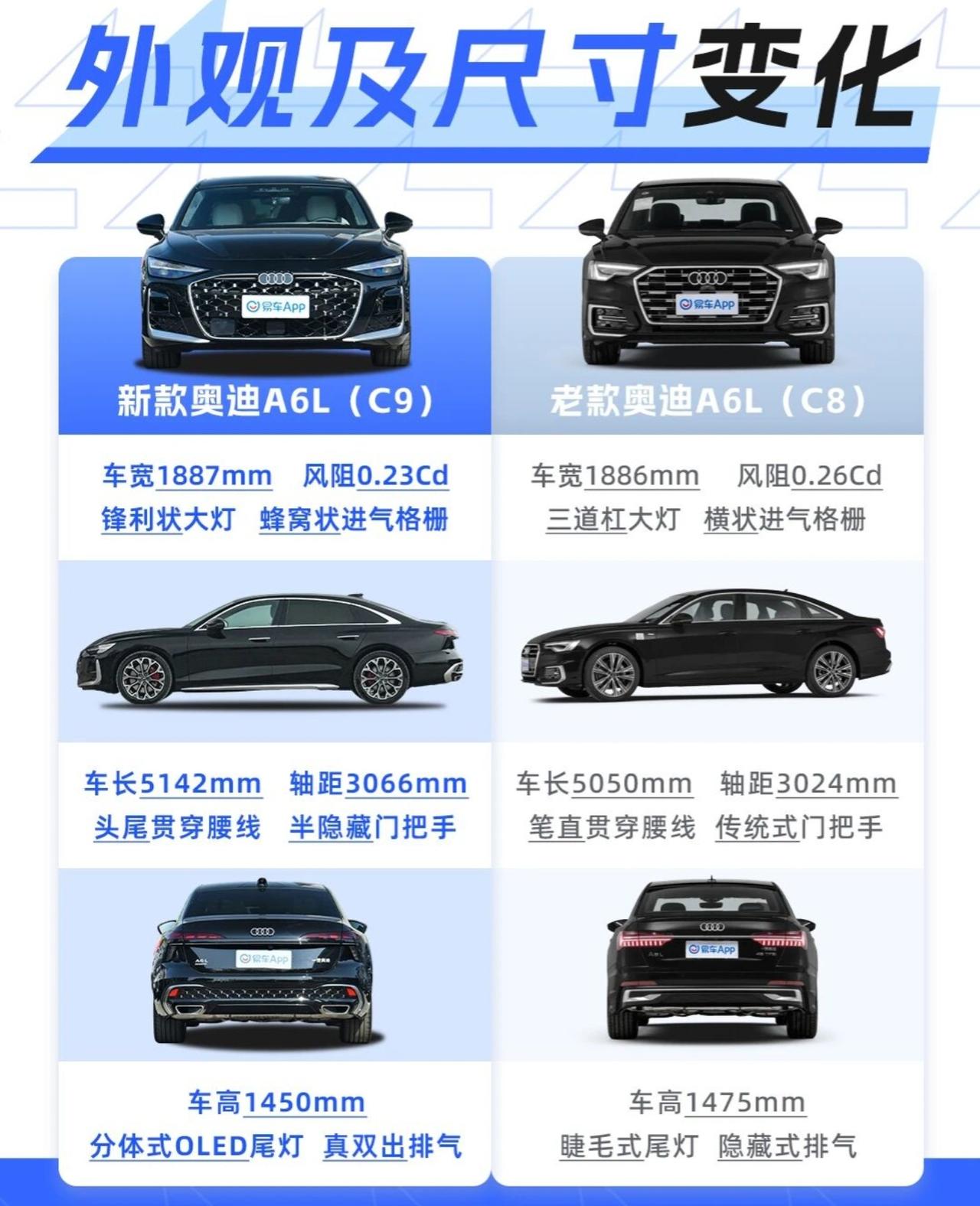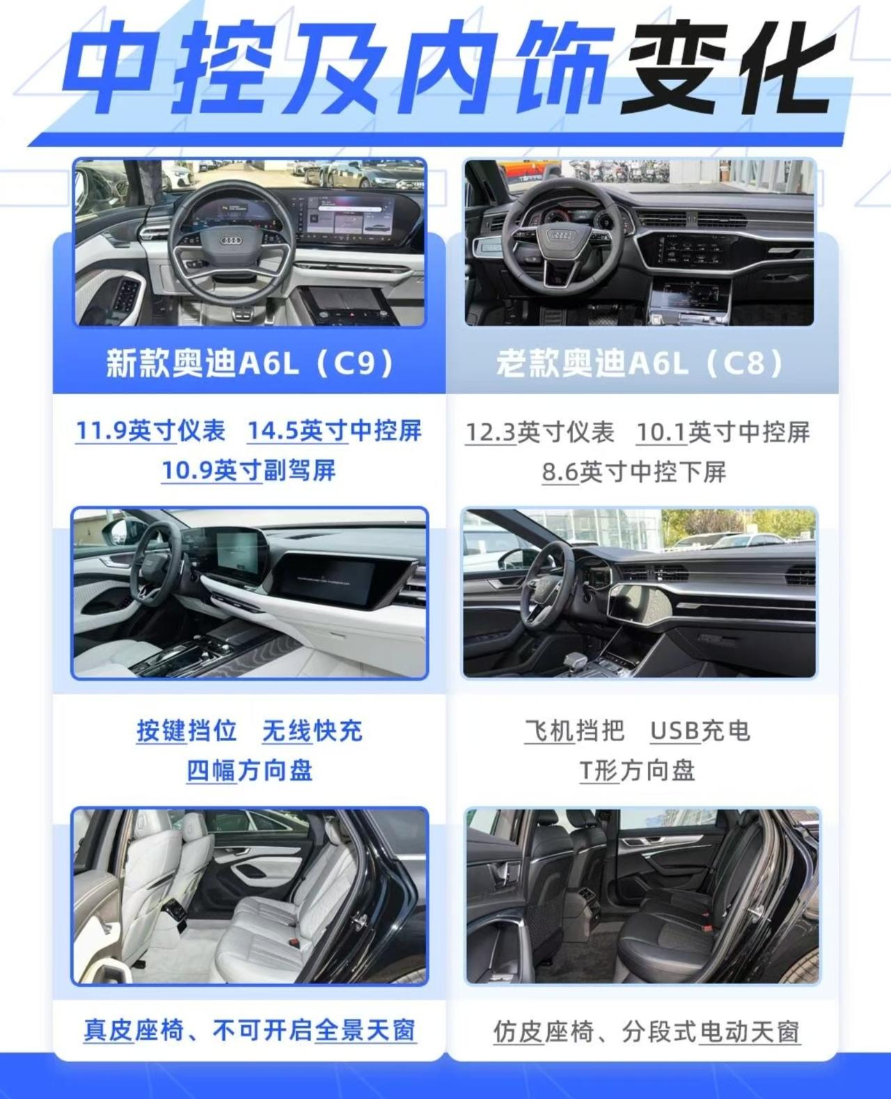 奥迪A6L换代背刺老车主?C9比C8便宜10万,配置还拉满!奥迪这波是真不讲武德!新款A6L(C9)预售价32.3万起,直接比老款C8便宜10万+,老车主看了都得攥紧方向盘! 动力方面也是直接拉满:第5代EA888发动机马力暴涨,3.0T干到367匹,还加了48V轻混,智驾、电吸门全给你安排上,老款有的它有,老款没有的它也有! 内饰三联屏+真皮座椅+按键挡把,比老款豪华不止一个档次;外观更运动,风阻更低,尾灯、排气全是真家伙,半隐藏门把手帅到没朋友! 这性价比,还看啥5系、E级?