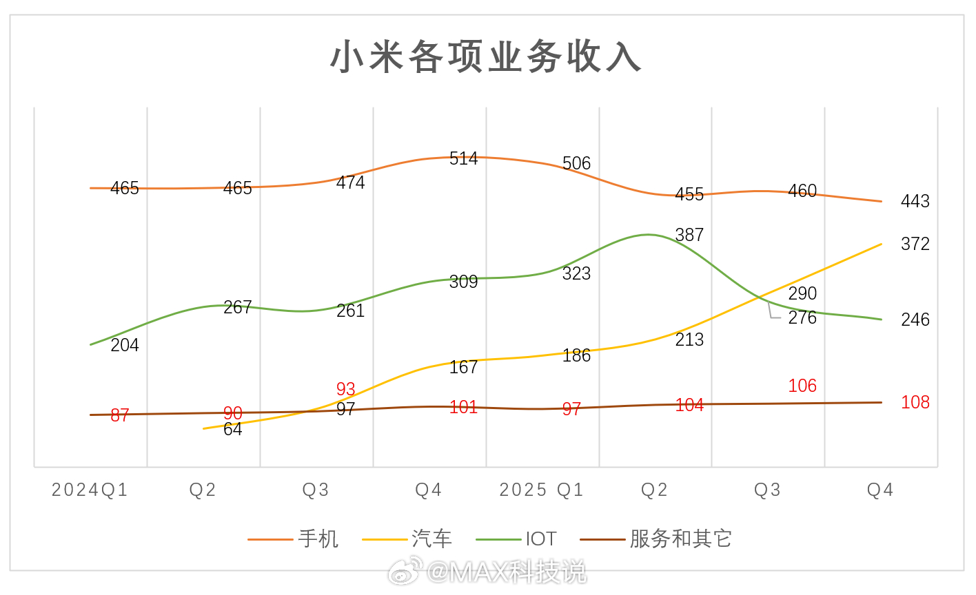 小米各项业务毛利,汽车贡献的毛利已经第一,手机是最不赚钱
