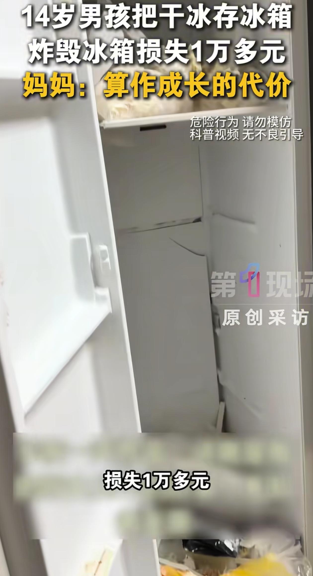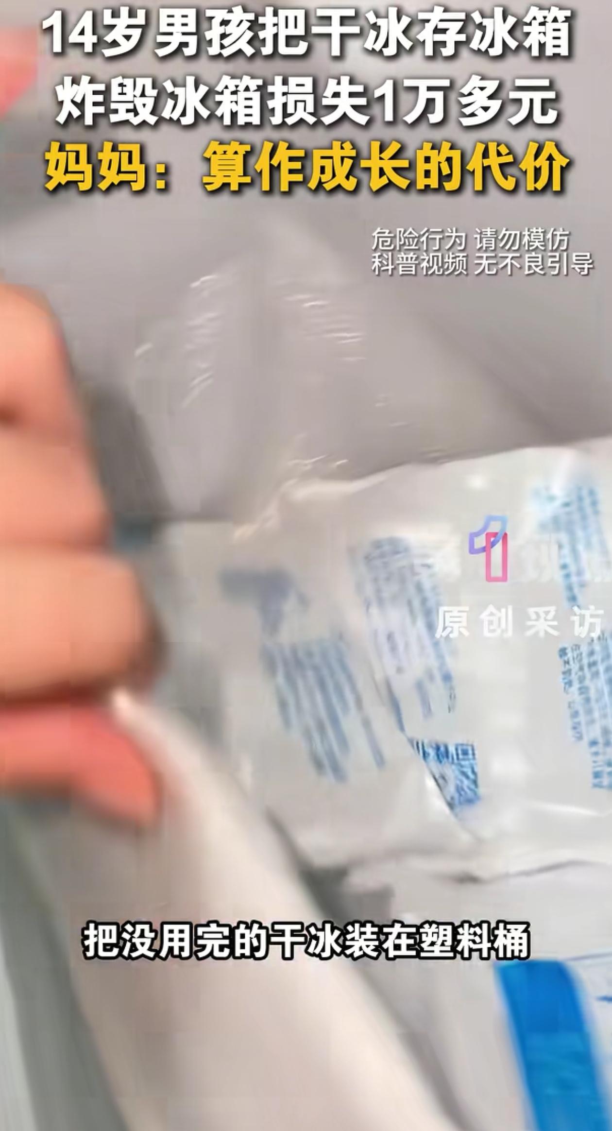 “这家长太好了!”浙江金华,14岁男孩自己在家鼓捣干冰,放到冰箱里储存,结果干冰爆炸,1万多的冰箱报废了,可家长知道后却没说他,反而趁这个机会给他上了一趟科学课。 终于知道为什么要初三才能上科学课了! 据妈妈介绍,他家孩子平时就对科学实验非常感兴趣,之前还在家里鼓捣过高锰酸钾和白糖,还好爸爸发现及时,把东西带了出去,没有发生什么大意外。 这次孩子用干冰做完实验后,就想着放冰箱里存着,下次拿出来再用,而夫妻俩当时又都在忙,没有注意到孩子的举动,结果干冰在冰箱里直接就炸开了。 本以为家长会把他骂一顿,没想到妈妈却问他,冰箱的温度才-18℃,干冰的温度却有-78℃,你说说这俩东西哪个温度更低?你又为什么要把干冰存到冰箱里呢? 经过妈妈这么一说,孩子瞬间恍然大悟,明白了干冰这东西不能放在冰箱里。 而妈妈也跟孩子强调,这些化学用品本身是非常危险的,不能随便在家里玩,这次冰箱坏了也就坏了,如果下次出什么事伤到了人,那才叫人追悔莫及! 有网友说这个孩子犯的错可以理解,他只说不懂这东西不能放在冰箱,不是故意淘气。 也有网友纳闷,干冰这东西究竟放在哪里才安全? 其实对干冰而言,最合适的存放容器是专用的泡沫保温箱,而且还得记住在盖子处留出缝隙。 如果没有,也可以使用坚固的纸板箱,但同样不能密封。最理想的存放地点是阴凉、干燥且通风的室外或阳台,放在这些地方应该没什么问题。