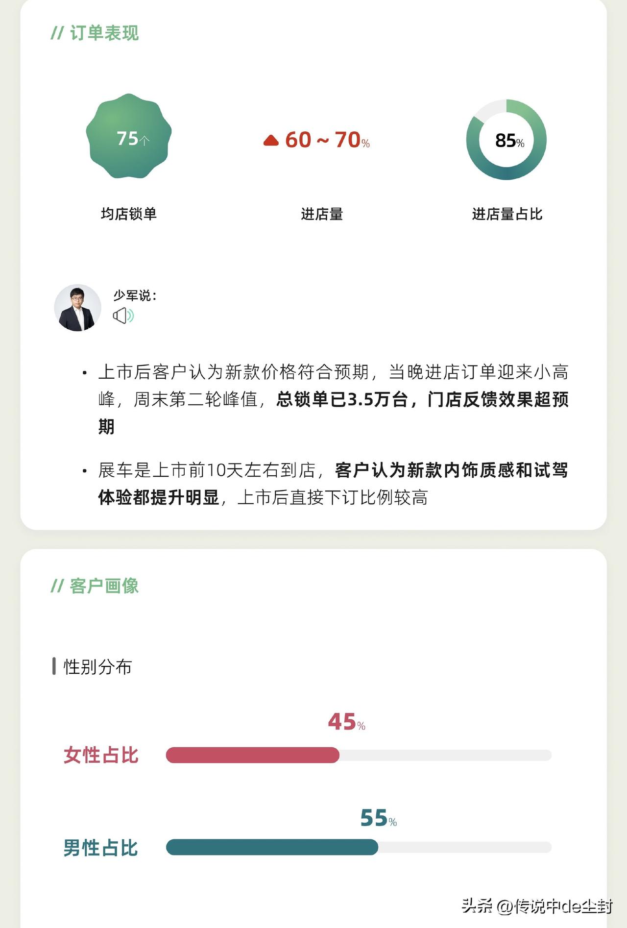 少军的小米新一代SU7销售周报里的这个数据有意思。 “大部分进店客户依然不考虑其他品牌” 而且女性用户占比近半,可能这就是小米汽车的魅力之一吧…… 虽然很多车把小米SU7当成竞品车型,但实际上几乎没有人去对比,也就特斯拉model 3有一些对比,然后是少量的蔚来ET5和奔驰C级,仅此而已。 整体订单上,经过周末高峰,锁单已经超过3万台,刚好也和雷军在直播中透露的3万台对的上,而且这是实实在在的锁单。 看起来新一代SU7依然是很成功的开局……