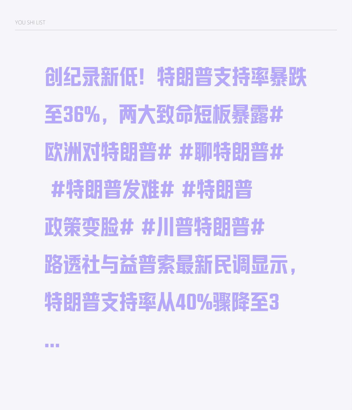 创纪录新低!特朗普支持率暴跌至36%,两大致命短板暴露 欧洲对特朗普 聊特朗普 特朗普发难 特朗普政策变脸 川普特朗普 路透社与益普索最新民调显示,特朗普支持率从40%骤降至36%,创下重返白宫以来最低纪录。 此次下滑主因两大民生与外交危机。油价飙升引发生活成本失控,仅25%民众认可其经济治理,而这正是他2024年竞选核心议题。对伊军事行动更是引发强烈反对,61%美国人不支持,仅35%表示赞同。 尽管共和党内部支持稳固,但民生与外交双重失分项已严重拖累其整体民意,执政压力陡增。特朗普碰壁 特朗普状态