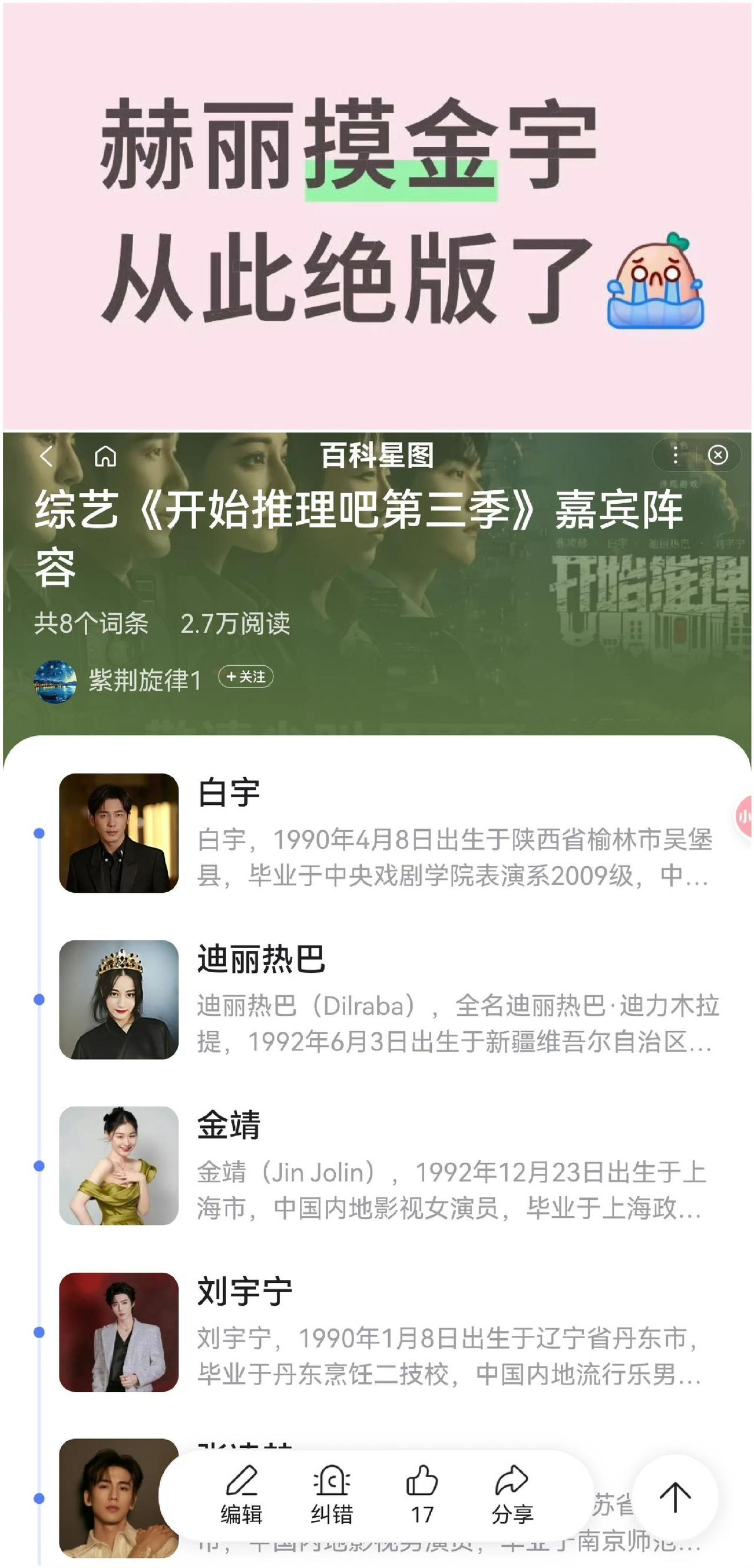 笑不活了!张凌赫得知热巴白宇退出开推4,反应倔到可爱🤣 张凌赫也太真实了吧!听说迪丽热巴、白宇不录开推4,当场瞳孔地震,第一反应就是死不相信,直接喊“假的!”,还固执地说,必须工作人员当面跟他说,他才肯认,不然就当是谣言。一脸不肯接受的样子又倔又好笑,看得出来是真舍不得老队友,这波真情实感太圈粉了!