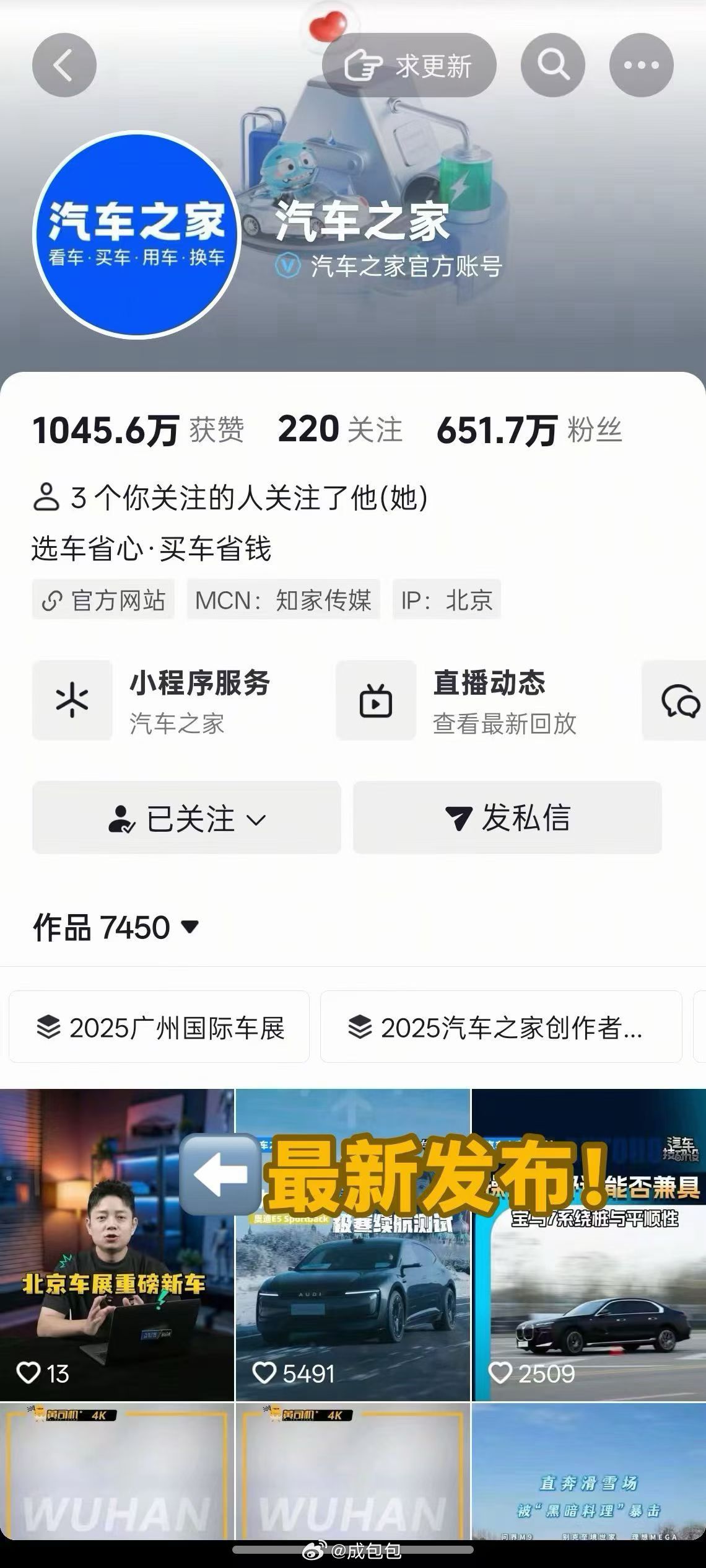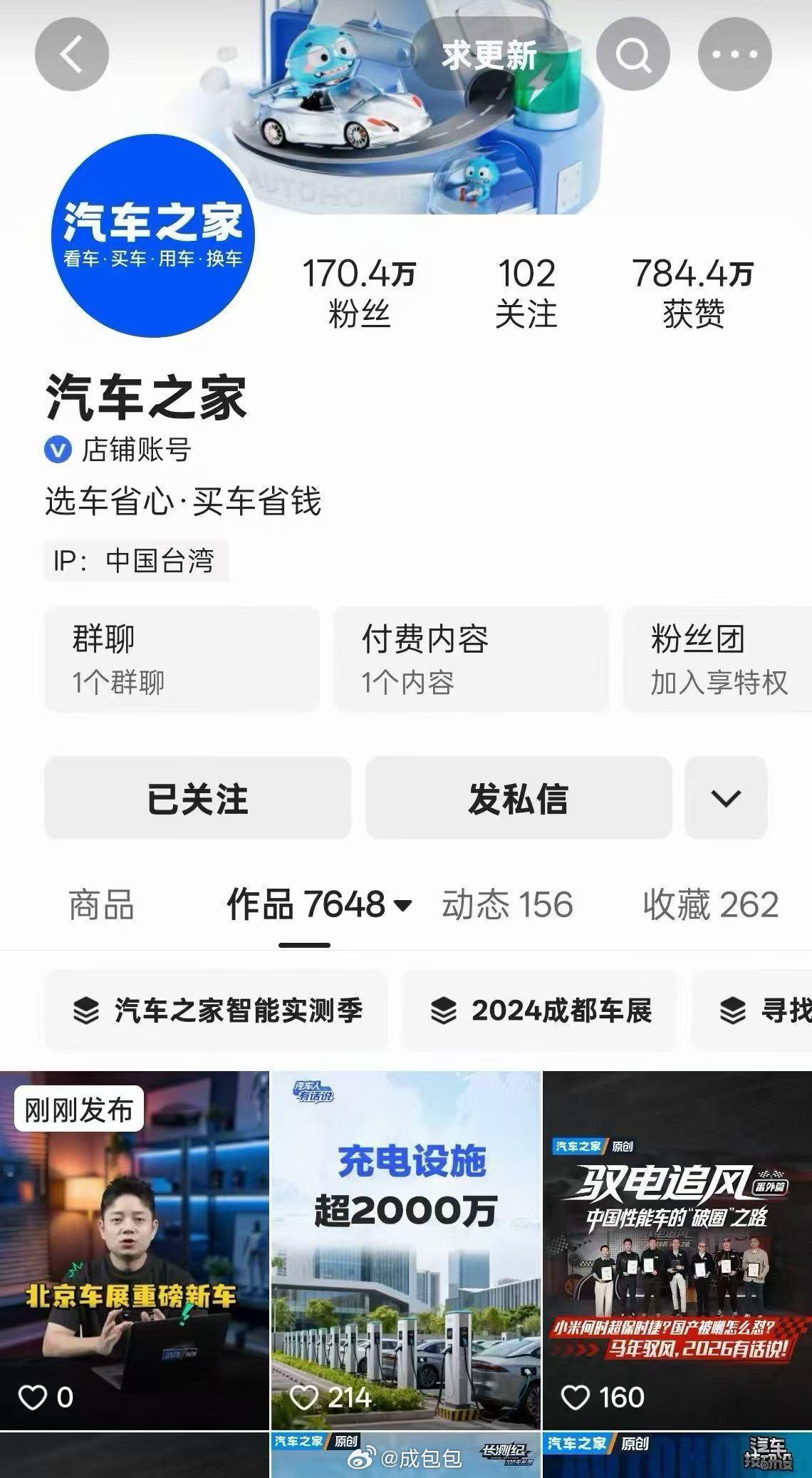 汽车之家多个平台账号被禁止关注IP:中国台湾?