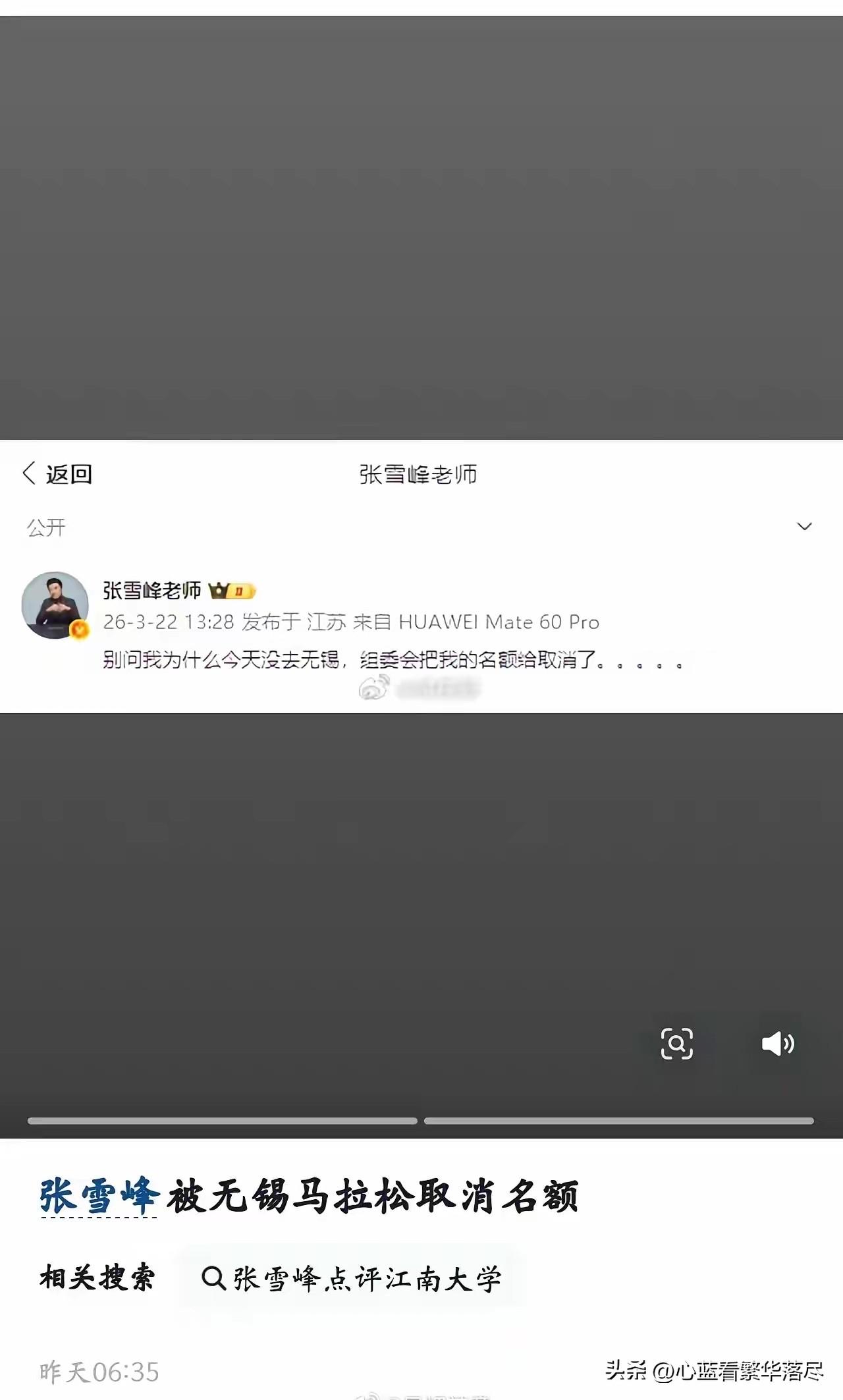 原来就在张雪峰突然去世的前两天,他就被无锡马拉松给取消名额了,但是关于被取消名额的原因,张雪峰却并没有说明具体是什么原因,有位经常参加马拉松的朋友说,张雪峰被无锡马拉松取消名额的原因,很可能就是体检不合格,身体指标不达标,也就是说在张雪峰突然去世的前两天,他就知道了自己的身体健康出了问题,但是却没有引起他的重视,我想这或许还是跟他的性格有关吧?