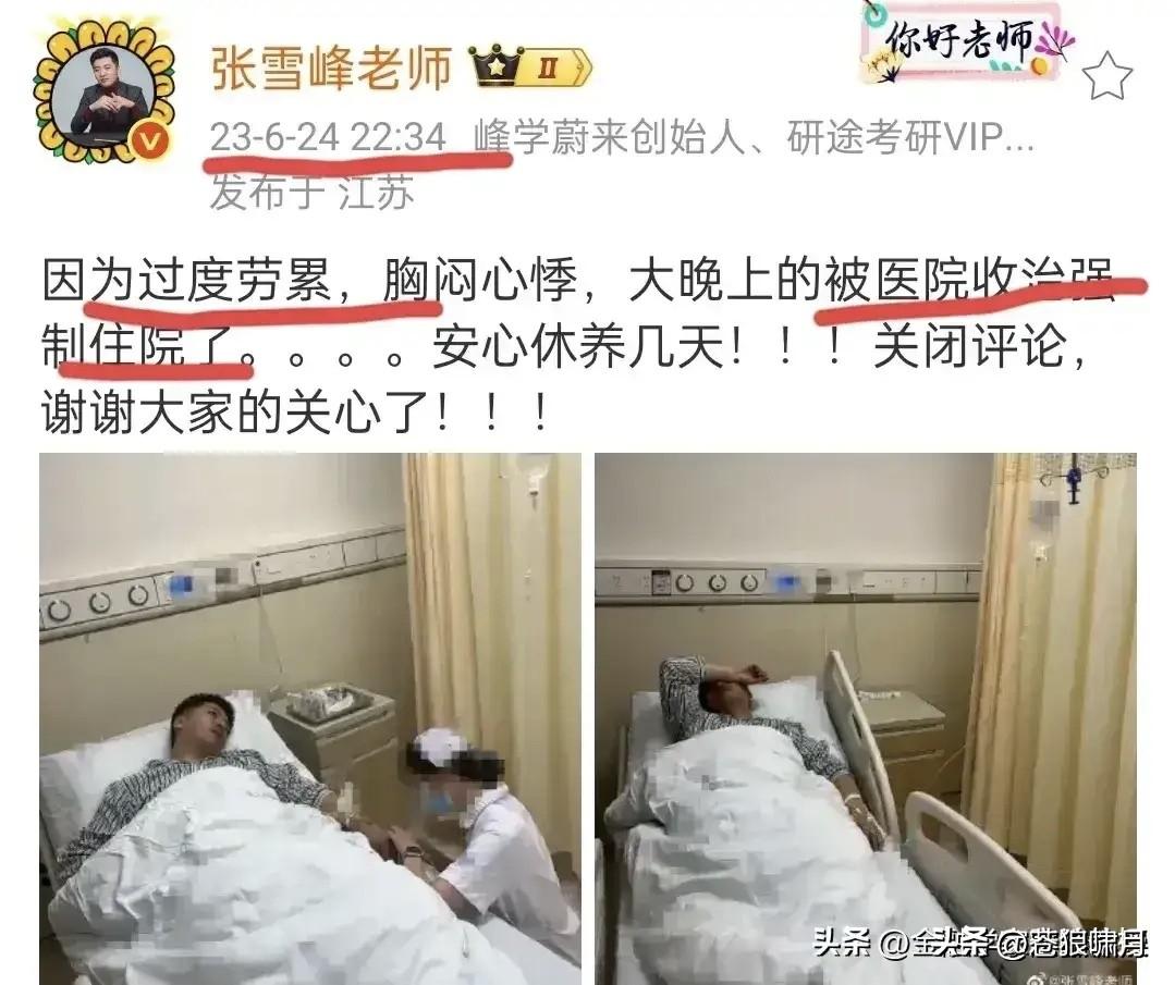 张雪峰壮年早逝,令人唏嘘不已!曾经的他何等意气风发,光鲜亮丽,腰缠万贯,粉丝千万,视频直播指点迷津,侃侃而谈,深得学子与家长喜爱! 但透过现象看本质,谁知他当初创业的艰难困苦?谁知他饱受刁难打击的痛苦经历?汗水和着心血,漫长跋涉攀登,让他实现财富自由的生活幸福! 这种常人无法理解的经历,痛苦煎熬的身心双重付出,让刚及“不惑之年”的他已经“未老先衰”!每天长跑是硬撑是坚持,但“先衰”的身体不给力了! 张雪峰的早逝,是一个沉痛教训,也给网友们提了一个醒:身在底层,要拼出一番事业,不付出超过常人数倍努力,不“褪几层皮”是不可能实现的! 但为了事业有成,出人头地!拼到伤害身体,壮年早逝的地步,到底值不值?芸芸众生中,出人头地者是极少数,天命不可信,但“人上人”有几个? 经常看到有“科技精英”,废寝忘食攻关奋斗,英年倒在岗位上!也有勤奋自媒体博主,起早贪黑凌晨写作,“而立之年”倒下的消息!其实大可不必。 人生有天命,不然瞎扑腾!命里只有八格米,走遍天下不满升!这都是迷信说法。但高官大款有几个?没有那个命,面对现实有吃有喝,其实也挺好! …………