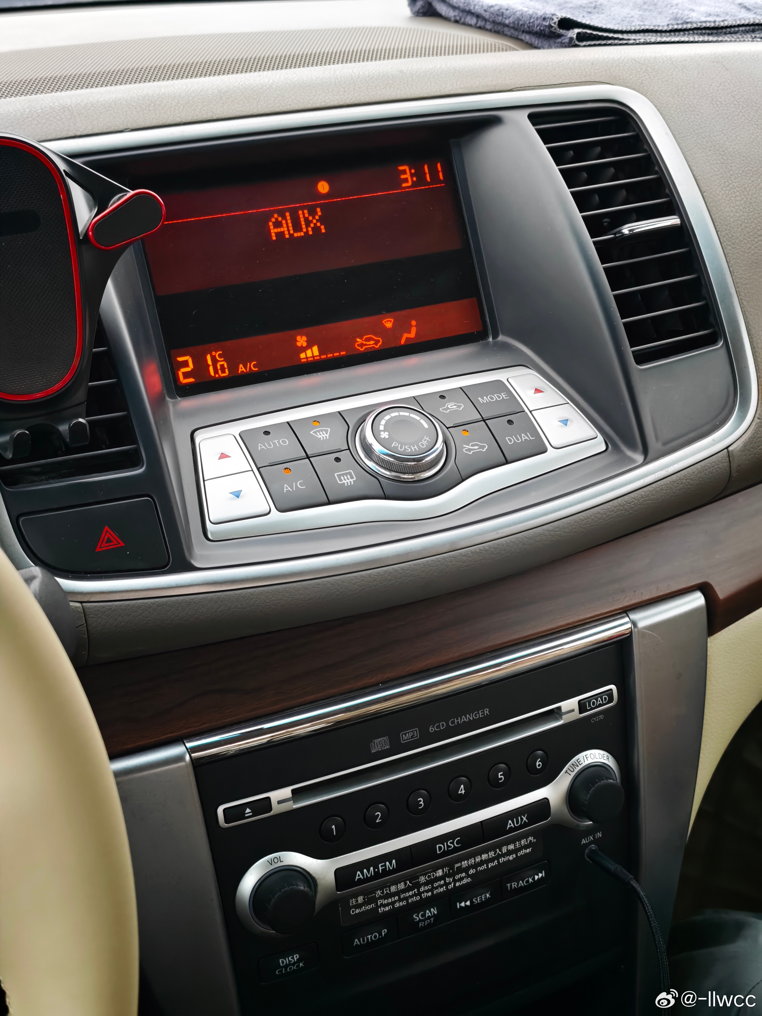这是一台2.5 XL领先型,作为08款天籁2.5排量的最低配,很多配置都欠奉。它没有车身稳定控制和牵引力控制系统,没有座椅加热通风,没有品牌音响,也没有倒车影像和车载大屏。但它的音响系统表现得很不错,不管是钢琴曲还是女声都能呈现得相当好,清亮通透;没有大屏也带来了与高配不同的中控按键布局,空调控制按键布置得比较高,很方便操作,两块单色屏幕显示也很清楚明了。