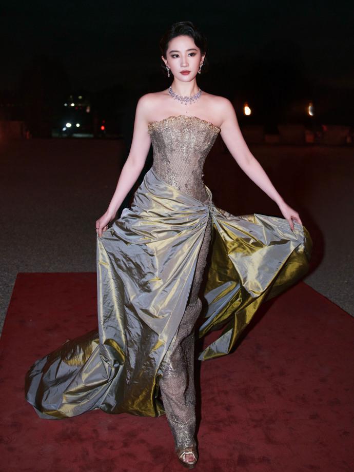 最近刘亦菲在出席时尚活动的时候搭配的很有公主范儿,看上去华丽又高贵。 刘亦菲这次穿了一件很美的抹胸裙,让她秀出了迷人的香肩和完美的身材曲线,尽显优雅高贵之美。 她搭配的衣服上有很奢华的纹样,凸显出了一种古典式的奢华感,效果真的是太出彩了。 刘亦菲脚踩时尚的鱼嘴高跟鞋,还特意把头发挽了起来,画着精致的妆容,目光炯炯有神,看起来 特别的靓丽。 她脖子上搭配了漂亮的宝石项链,还戴着超美的耳坠,带给人一种高贵但不高傲的感觉,确实是太有吸引力了。