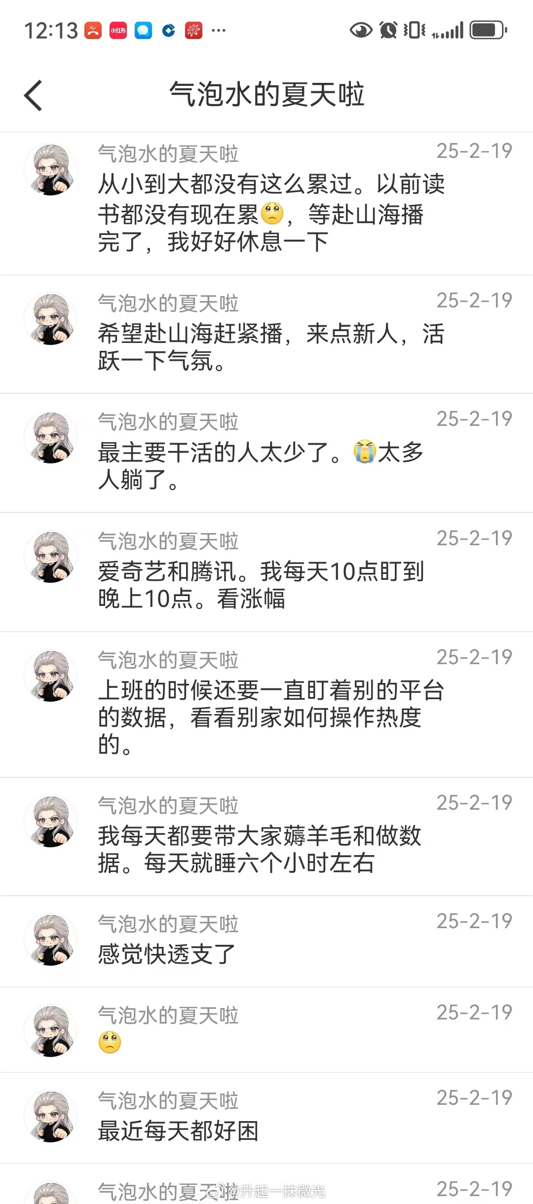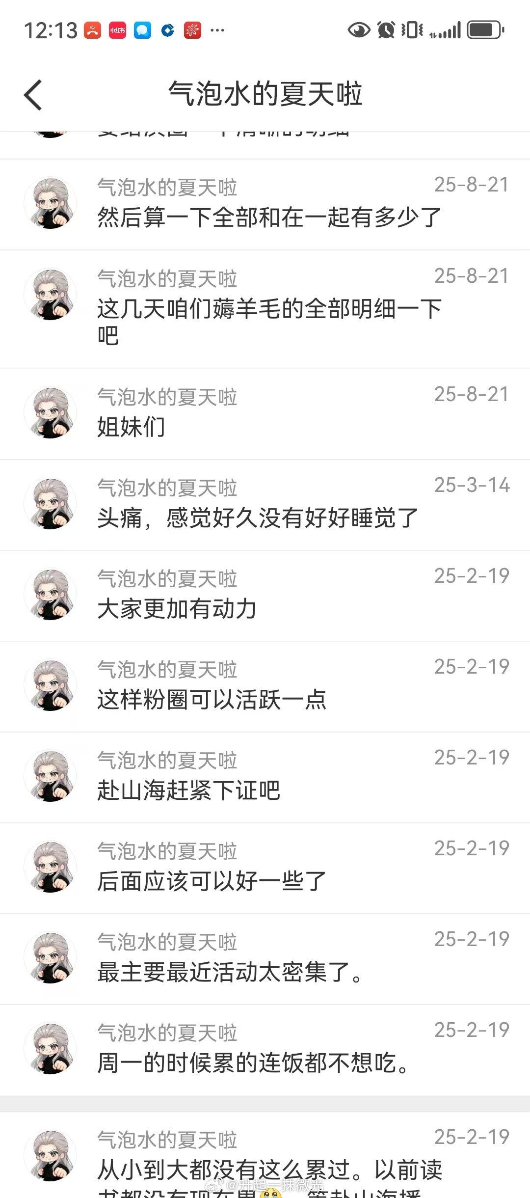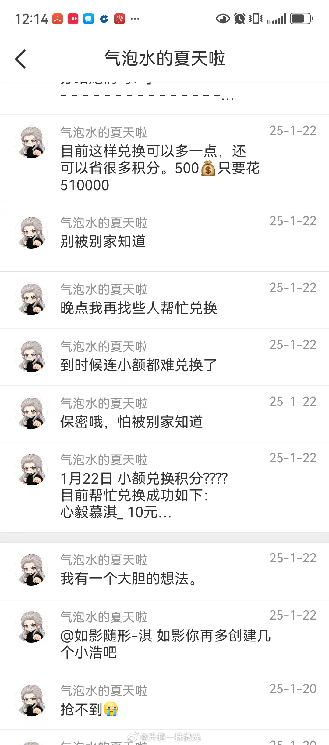 听到些关于气泡水的事,也说几句吧。我和气泡水并不认识,唯一的交集就是薅羊毛,云包场,交流也仅限于兑积分公示,羊毛怎么包场这些公事。所以也不存在为谁说情,战队或者有私人感情,对于她本人最近的风波我不了解,不予置评,但做过的实事不能被磨灭,我只是说我看到的。从2024年底我开始收积分时接触,她一直很尽心尽力的为了薅羊毛努力,怕有💰的纠纷,所以💰都是在我们几个人这保存,公示的时候都精确到几分钱,就是怕大家有想法。后来因为💰随时可能会用,理财也没几十块收入,我们就都没放理财。再公示的时候,气泡水怕会有人有非议,自己垫付了些钱,就当做利息了。就是这样小心翼翼,也还是不断被有心人拿出来说事。(没和本人联系贴了几个聊天记录,希望没有冒犯到她)