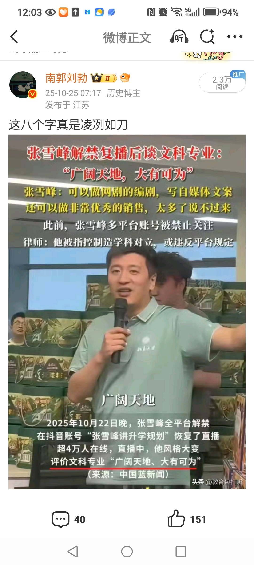 看到有人说很多招生办的老师受到了张雪峰的伤害,我觉得张老师最大的价值,就是伤害了某些招生办的老师。