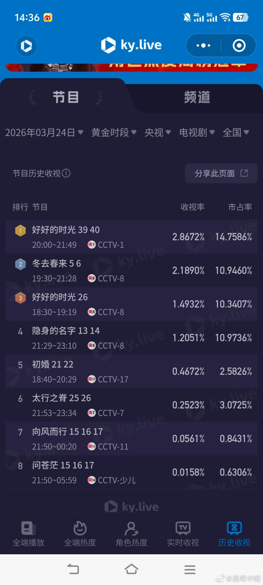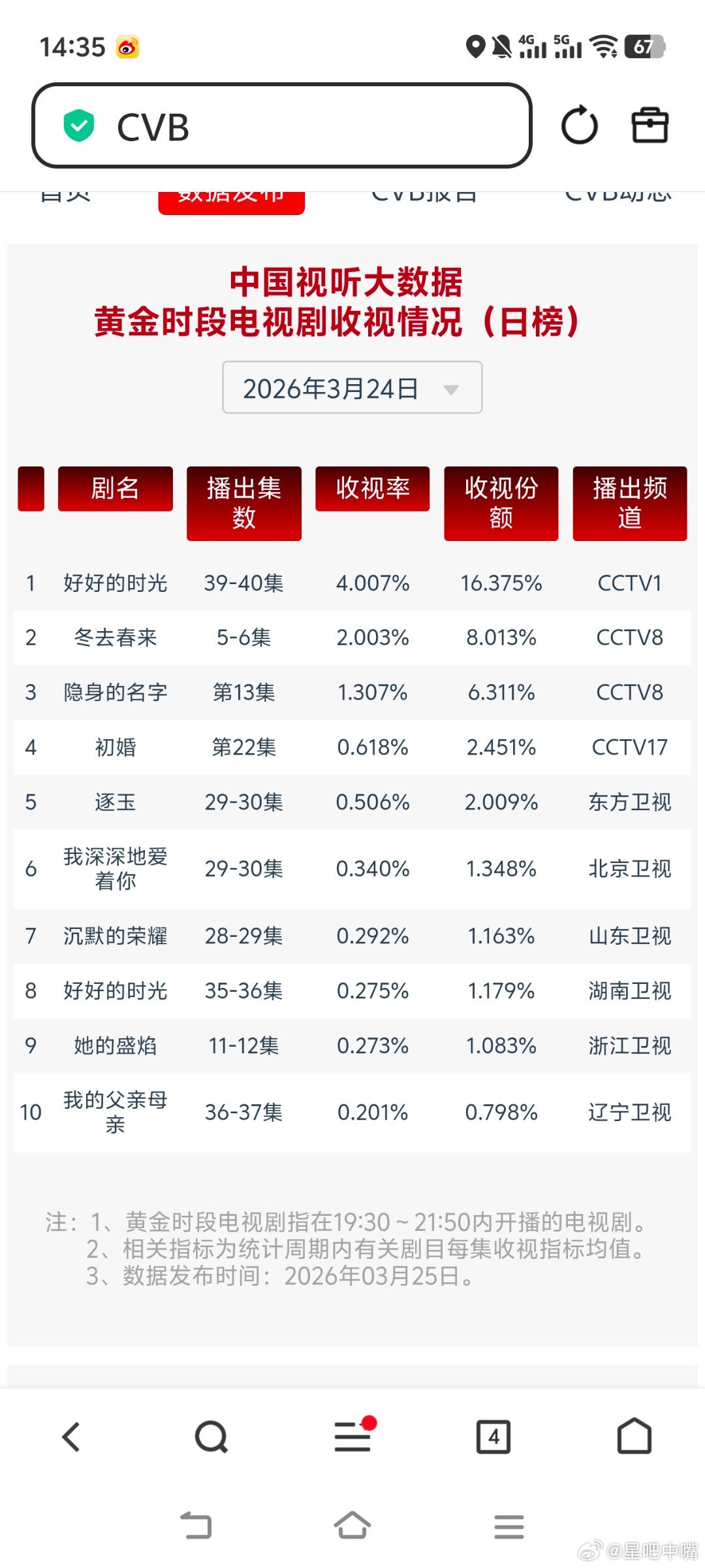 3月24日cvb收视日报《好好的时光》再次破4,《逐玉》再次破0.5