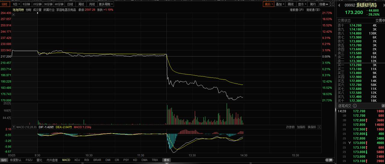 港股泡泡玛特跌超18% 非Labubu IP产品销售额未达预期 3月25日,泡泡玛特午后开盘股价直线跳水,盘中一度下跌15.84%,为去年4月7日以来盘中最大跌幅。截至13:09分,报188.6港元/股,跌幅达13.17%。 消息面上,泡泡玛特今日午间发布财报,泡泡玛特2025年全年营收371.2亿元人民币,同比增长184.7%,预估379.6亿元人民币;净利润127.8亿元人民币,同比增长308.8%,预估126.4亿元人民币;每股末期股息2.38元人民币,上年同期0.81元人民币。 从IP结构来看,LABUBU家族(THE MONSTERS)无疑是全年最大亮点。该IP实现营收141.6亿元,同比增长365.7%,占总营收比重从2024年的23.3%跃升至38.1%,首次突破百亿大关,但非Labubu IP产品销售额未达预期。 此前,艾媒咨询创始人张毅在接受媒体采访时就曾表示,对于泡泡玛特来说,单一的IP不超15%,头部不独大,腰部IP成基本盘,会是一个比较健康的状态。 中泰证券同样认为,爆款IP由于存在高度不确定性,所以简单“做加法”很难实现更高的估值。IP投资的确定性在于用户,用户规模是平台公司变现的基础,也是平台公司估值的起点。具备完善基建和完整生态的IP平台由用户规模驱动估值扩张。