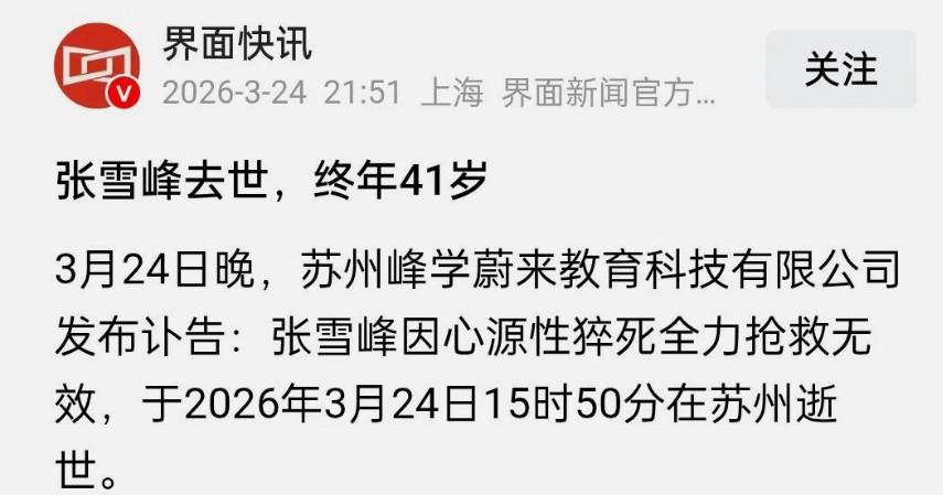 中国所有莘莘学子求学的指路明灯,张学峰离世,这盏明灯灭了。 是个实话实说,且耿直的人,为这个能为广大学子出谋划策的人离世,感到惋惜。 惊诧,哀痛!给张学峰老师敬上一朵最纯美的白色花朵一一默哀敬礼! 真不敢相信这是真的! 张雪峰在学子报考学校和专业方面提供了很多有益的思路和渠道,是一位真正平民学生的良师益友。