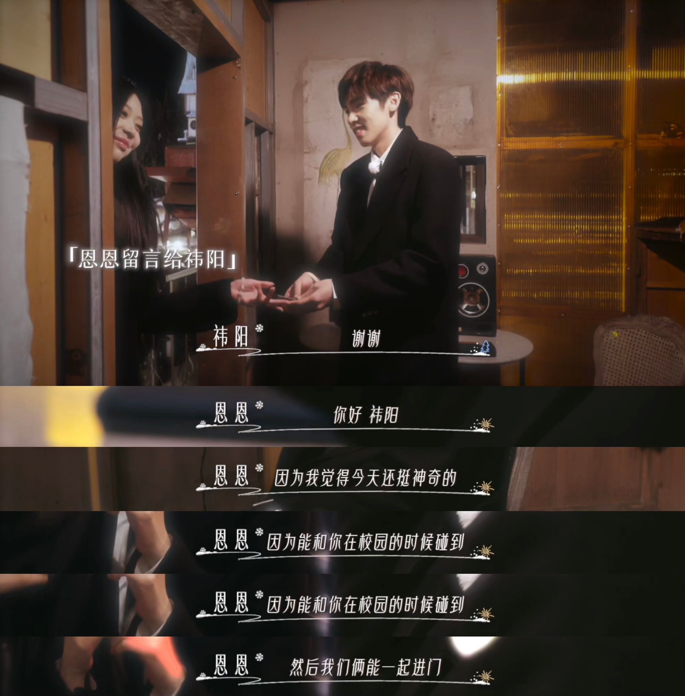 怦然冬季首次留言开启完美定格。七月、小新、恩恩、小轩、白耀、照愉、祎阳、颜颜八位少年少女齐聚,冬日情书正式开篇,首次留言心动开启,共赴纯粹青春悸动。