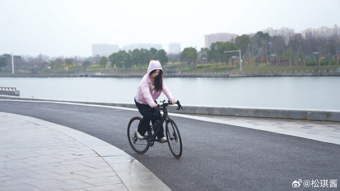 主持人松琪分享骑行照片:今天有氧日,直接骑行