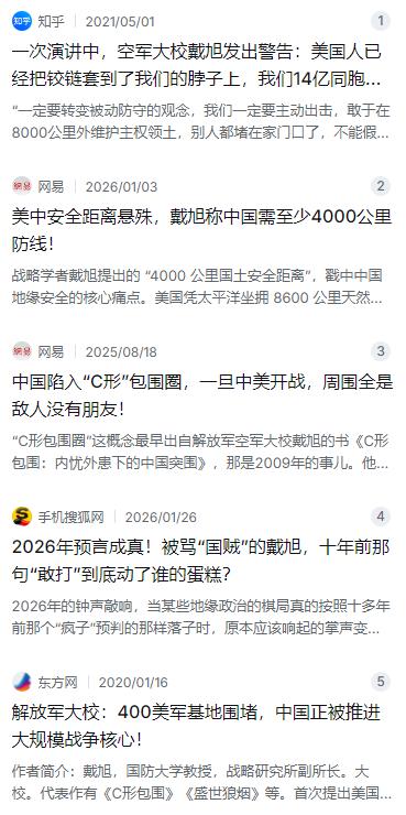 中国战略家戴旭:美国的国土安全距离超过8000公里,中国却是0公里,为什么?中国至少需要4000公里以上的国土安全距离! 麻烦看官老爷们右上角点击一下“关注”,既方便您进行讨论和分享,又能给您带来更多优质的内容,感谢您的支持! 很多人可能没想过一个问题:美国本土为啥能安安静静过日子,几乎从没被战火烧到过?而咱们这边,总觉得对手的军舰和飞机就在家门口转悠?这里面藏着一个关键概念——国土安全距离。 咱们国家有个战略家叫戴旭,国防大学的教授,空军大校,也是《C形包围》这本书的作者。他提出过一组让人印象深刻的对比数据:美国的国土安全距离超过8000公里,而中国,在某种程度上几乎是0公里。这差距到底是怎么来的? 美国那地界,地理条件确实好到让人眼红。东边是大西洋,西边是太平洋,北边是加拿大这个铁杆邻居,南边是墨西哥这种没啥威胁的国家。从旧金山到夏威夷3900公里,再到关岛又得2800公里,相当于家门口铺了三道天然防护垫。就算当年日本偷袭珍珠港得手了,想把炸弹扔到美国本土去,那也是天方夜谭。更不用说美国在全球到处建军事基地,光在亚太地区,就搞了个三层岛链的布局,直接把防御线推到了别人家门口。这样一来,任何想威胁美国本土的动静,都得在8000公里外就开始被拦截。 咱们这边的情况就复杂多了。戴旭用了“C形包围圈”来形容中国周边的地缘环境。咱们的邻居多,历史遗留问题也多。从日本、韩国,到菲律宾,再到印度,美国在这些地方部署了密密麻麻的军事基地。有数据显示,光是在中国周边,美军就有大约130个军事基地,驻扎了超过37万的兵力。这还没算上那些不断升级的军事同盟关系。 最要命的是,咱们的经济重心——长三角、珠三角、环渤海这些地方,贡献了全国近70%的GDP,却全都挤在东部沿海那一小片区域上。而这片区域,正好就贴着美军第一岛链的基地群。拿福建平潭来说,离台湾新竹只有125公里。这是什么概念?现在导弹飞个几马赫的速度,从那边打过来,留给咱们防空系统的反应时间也就十几秒。上海到驻日美军横田基地850公里,战斧导弹飞过来也就10分钟的事儿。这种压力,用“零距离”来形容一点也不过分。 面对这种悬殊的对比,戴旭提出过一个核心主张:中国至少需要建立起4000公里以上的安全纵深。很多人一听这数字,觉得是不是太激进了?这不是要搞扩张吗?还真不是。 戴旭解释过,这4000公里不是瞎喊的口号,是建立在现代武器性能和地理数据基础上的精确计算。咱们的东风-26导弹,射程大约就是4000公里。如果把安全边界推到4000公里外,从咱们沿海发射,大概12分钟就能飞到关岛,能有效威慑第二岛链的核心节点。歼-20的作战半径大约2000公里,如果要从海南起飞去关岛方向执行任务,来回就得超过4000公里,这就必须得有空中加油和远洋保障体系的支撑。 说到底,他讲的这个“安全距离”,核心就是把防线往前推,在大洋上就把潜在的威胁给拦截住。这就像你家门口,如果巷子口就站着几个不怀好意的人,你肯定得在小区大门口就设上保安和门禁,而不是等到人家拿砖头砸你家窗户了才反应过来。 有人可能会问,咱们不是一直讲“积极防御”吗?从“近海防御”到“远域防护”,这步子是不是迈得大了点?其实,戴旭的看法很直接:这不是变,这是被逼出来的必然选择。美国用三层岛链把咱们围得严严实实,第一层岛链距离咱们本土只有一两百公里,等于已经把铰链套到了咱们脖子上。咱们的沿海城市、工业基地,全在人家的常规火力覆盖范围内。在这种情况下,如果还只满足于在家门口防守,一旦有事,后果不堪设想。他打了个比方,说战争绝不能在我们国土上进行,要打也得在公共空间,或者在对手的家里打,绝对不能在家门口打。 那这4000公里的安全纵深,光靠想肯定不行,得靠实实在在的实力去撑。这些年,咱们其实已经在悄悄布局了。 在南海,永暑礁、渚碧礁、美济礁这些地方,建起了可以起降重型战机的跑道,相互支援,就像三艘不沉的航空母舰。在海上,055型万吨大驱一艘接一艘地下水,112个垂发单元能装各种导弹,理论上能在1000公里外对航母战斗群构成威胁。在天空,咱们的歼-16、运-9反潜机频繁前出西太平洋,穿越巴士海峡、宫古海峡已经成了家常便饭,空中巡逻的范围已经推到了第一岛链以东2000公里的地方。 戴旭特别看重火箭军的“反介入/区域拒止”能力。东风-17、东风-21D、东风-26这些“航母杀手”,射程覆盖了第一、第二岛链,有的型号甚至能摸到夏威夷。美军自己的一些智库都评估过,说一旦有冲突,他们在亚太的基地可能会面临超过1000枚导弹的饱和攻击,现有的防空系统根本拦不过来。这种不对称的优势,很大程度上抵消了美国那些前沿基地的优势。