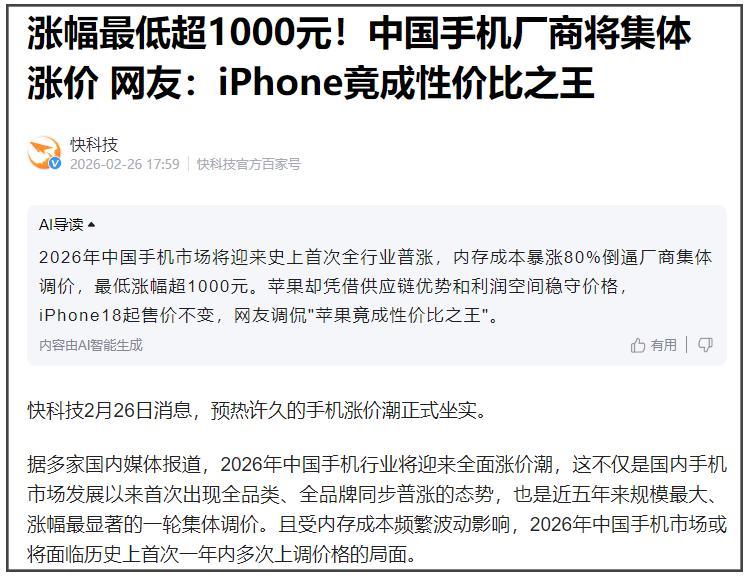 很多人没看懂,华为麒麟芯片下放到1299元的手机,绝对是中国芯片一个标志性时刻,不亚于当初麒麟芯片满血复活。 大家都知道,华为当初被美国给全方位制裁了,你要生产华为的麒麟芯片,芯片生产线上连一颗螺丝钉都不能是美国的。 所以一开始华为只能购买高通芯片,然后麒麟芯片回归,但是良率和产能都不算高,只能优先给旗舰机型。 现在过去六年时间了,华为将麒麟芯片下放到畅享千元机产品线,那么就意味着,华为背后的芯片生产线已经足够成熟,生产线的良率已经稳定,产能开始溢出,单片成本也降到了能支撑入门级产品利润的水平,才能这么做。 也就是说咱们芯片产业,已经打破国外芯片封锁,起码是足够支撑高端产品的产能了。以前华为用国内的零部件,被很多人嘲讽,但如今,它们开始成长为华为的护城河。 但是呢,华为还有千元机,确实出乎我的意料之外,你看现在全球手机市场是个什么情况,存储芯片价格涨得离谱,根据IDC的数据,2026年全球智能手机出货量预计要降12.9%,但平均售价反而涨了14%,达到523美元的历史新高。 国内各家手机厂商也早就扛不住了,从3月份往后发布的新机,涨价幅度基本都在500-1000块钱。这个时候华为拿出一台1299元的千元机,还用的是麒麟芯片,成为唯一死保价位的手机企业。 为什么华为这么坚挺?原因就是华为系供应链给力啊,在零部件疯狂涨价的时候,还能拿到比较低的价格。 但其他厂家羡慕不过来,为啥? 因为华为这十年来,一直率先支持国内厂商,而且合作深度不是一般的大。屏幕、电池,包括国产存储芯片,都不是简单买来用,而是从起步阶段就绑在一起。 比如屏幕,三星做手机还得看京东方或者LG的产能波动去排期采购,但华为和京东方、维信诺这些厂商的合作,早就深入到联合定义像素排列,甚至共同投资新产线。 这种深度的合作,带来的不光是供应稳定,更重要的是能做出性价比高、差异化大的东西,俗称护城河。 这件事也告诉我们,支持国产才是唯一出路。不然你得脖子就卡在别人的手上了。