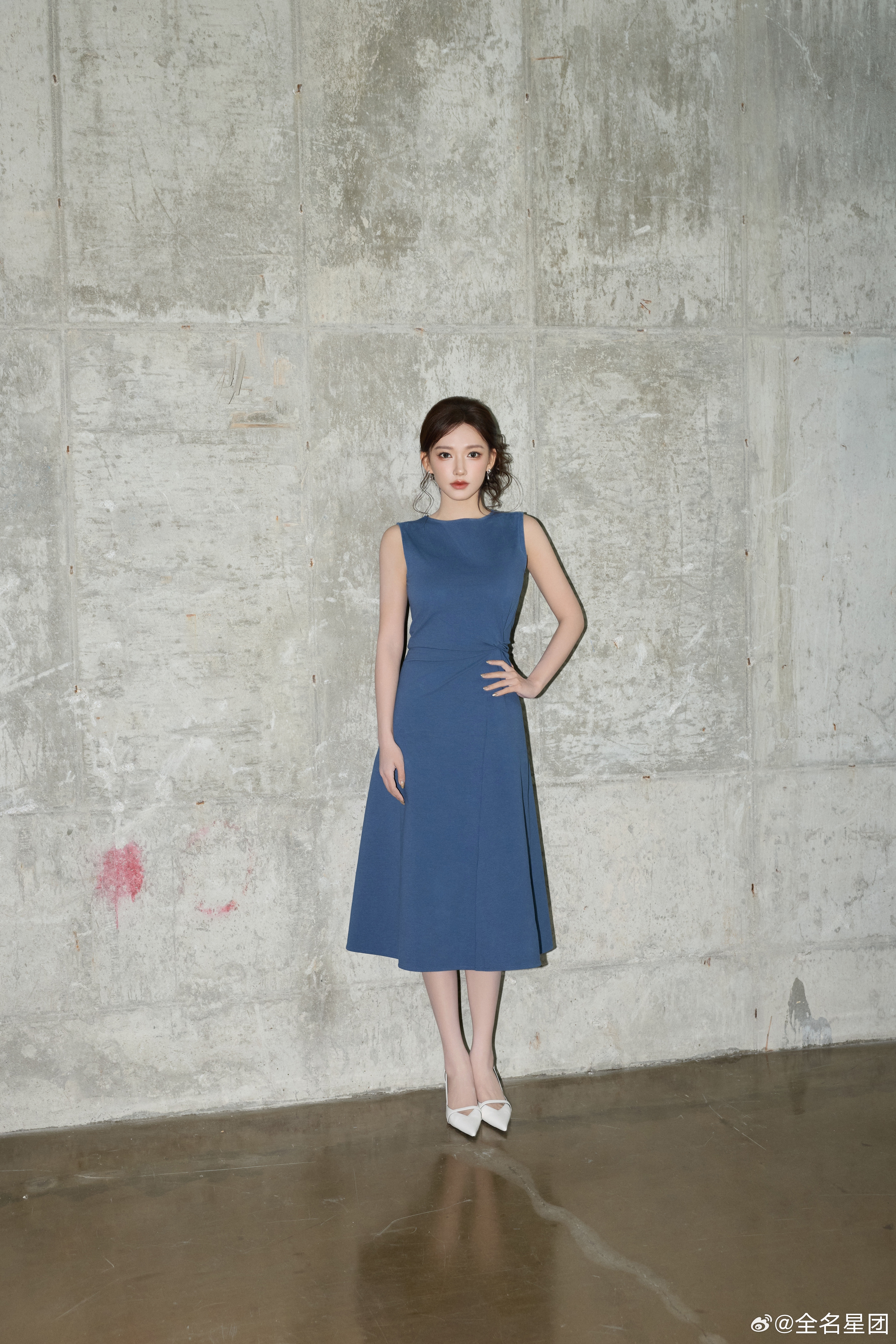 程潇雾蓝色无袖连衣裙猫塑程潇的人是天才程潇亮相 COS 春夏大秀,雾蓝色无袖裙简
