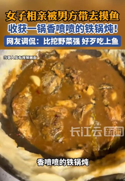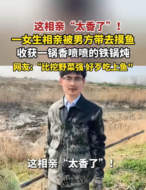 “比挖野菜的强,好歹吃上鱼了!”近日,安徽,一女子去相亲,男方没有带她去餐厅吃饭,也没去看电影,而是直接带女子去郊外,体验了一把摸鱼的快乐,最后收获颇丰,男方还用两人一起摸的鱼,给女子做了一大锅铁锅炖!网友:“这个相亲方式也太香了!” 这场相亲的开端,和普通相亲并无二致。 女子原本也做好了常规相亲的准备,想着大概率是找个环境不错的地方一起吃吃饭、聊聊天。 可见面之后,男方并没有按照她预想的那样,朝着市区的商圈或者餐厅出发,而是径直开车往郊外走。 一路上男方没有过多的铺垫,只是简单说着带她去个有意思的地方,放松放松心情。 就这样,女方抱着好奇的心态,跟着男方一路驶向郊外。 最终,车子停在城郊一片水里有鱼的开阔空地上。 男方下车后带着大网子径直走到水边,他一边走一边转头看向女子,并邀请女子一起下水抓鱼。 刚开始女生抓鱼的时候还有些放不开,毕竟是和刚见面的相亲对象近距离待在野外,还是在浅水里摸索,难免有些拘束。 可看着男方完全放松的状态,看着他只是专注地盯着水面,满眼都是实在,她也慢慢放下心里的拘谨,学着男方的样子一起抓开了鱼。 抓鱼的过程,没有想象中那么轻松。 水里的鱼儿灵活又机敏,想要抓住绝非易事,两人需要默契配合,一人轻轻驱赶,一人拿着网子伺机合围。 脚步慢了抓不到,动作大了又会把鱼惊跑。 稍不留神,还会溅起一身泥水,脸上、胳膊上、裤脚都沾着湿漉漉的泥点,全然没了平日里精致的模样。 两人在水里来回摸索,时不时因为抓不到鱼相视一笑,偶尔一方差点滑倒,另一方下意识伸手搀扶。 这场摸鱼并没有白费功夫,两人配合默契,折腾了一阵子,收获远比预想的要丰厚。 男方没有让这份收获白白浪费,抓完鱼之后,两人简单收拾了一下身上的泥,就做了一锅铁锅炖,让女子品尝一下刚捕到的鱼。 看着锅里的鱼渐渐炖煮,闻着香气一点点弥漫开来,女子心里的暖意也一点点升腾。 两人围着这一锅鱼,聊着刚才摸鱼的趣事,聊着日常的生活,轻松随意的交谈着。 等到铁锅炖彻底炖好,汤汁浓稠,鱼肉鲜嫩,色泽诱人,香气扑鼻,两人就着这锅亲手抓来的鱼,吃得格外美味。 女子后来在网上分享了这段经历,迅速引发了大量网友的围观和热议。 有网友调侃到:“这比挖野菜的强太多了,好歹真吃上鱼了。” 有不少网友直言:“别说,这鱼看起来开是真挺香。” 还有很多年轻人纷纷吐槽自己过往的相亲经历,对比之下,越发觉得这场摸鱼相亲还挺好的。 (信息来源:潮新闻《这个相亲方式也太香了!女子相亲被男方带去摸鱼,收获了一大锅香喷喷的铁锅炖:“这比挖野菜的强,好歹吃上鱼了。”》)