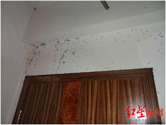 ▲门框上沿正在分飞的白蚁