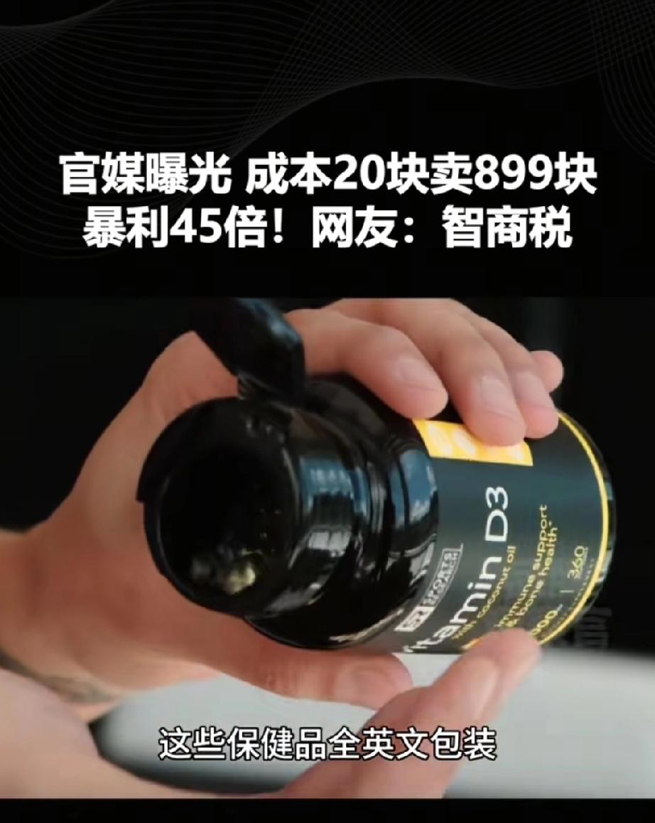 官媒曝光!成本20块卖899块,暴利45倍!网友:智商税。 官媒曝光的保健品暴利事件太离谱了!一瓶成本不到20块的“网红进口保健品”,电商平台竟卖到899块,暴利45倍,妥妥的智商税。像王阿姨花899元抢的“美国原装进口”抗衰胶囊,被官媒一曝光,才知道原料、加工、包装成本才20元。 商家套路很深,先让国内代工厂生产,贴上全英文包装,搞个“海外保健品资质”,从“保税仓发货”,再经电商平台标价、网红直播间“专家背书”,就把普通东西卖出高价。大家可得擦亮眼睛,别再交这种冤枉钱了! 保健品养生骗局 老人乱买保健品 保健品养生误区 反保健品骗局 进口保健品骗局 八大保健品 假进口保健品