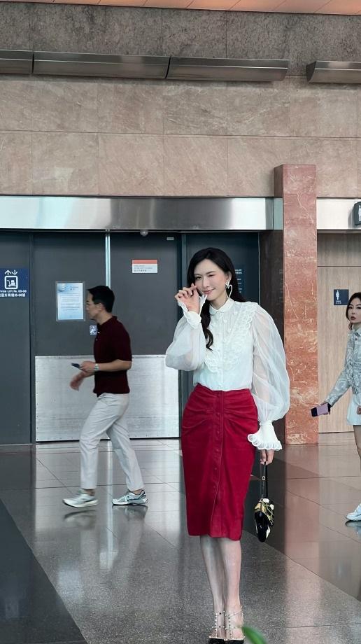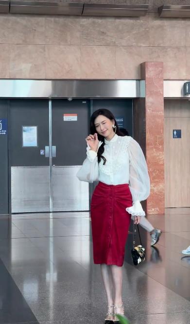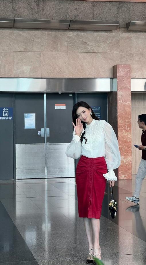 今天林志玲现身香港,她这次搭配的好靓丽,看起来年轻又迷人,似乎恢复了往日的风采。 林志玲上身穿白色衬衣,这件衬衣上有漂亮的荷叶边,下身穿红色裙子,凸显出了完美的身材比例。 她脚踩黑色铆钉高跟鞋,彰显出俏丽之美,也很有国际超模风采。 林志玲这次特意拉高了腰线,让她彰显出了完美的身材比例,真的好迷人。 林志玲留着漂亮的披肩长发,还画着精致的妆容,宛如一个超美的少女,确实是太美了。她仿佛是逆龄生长了,越变越有吸引力了。