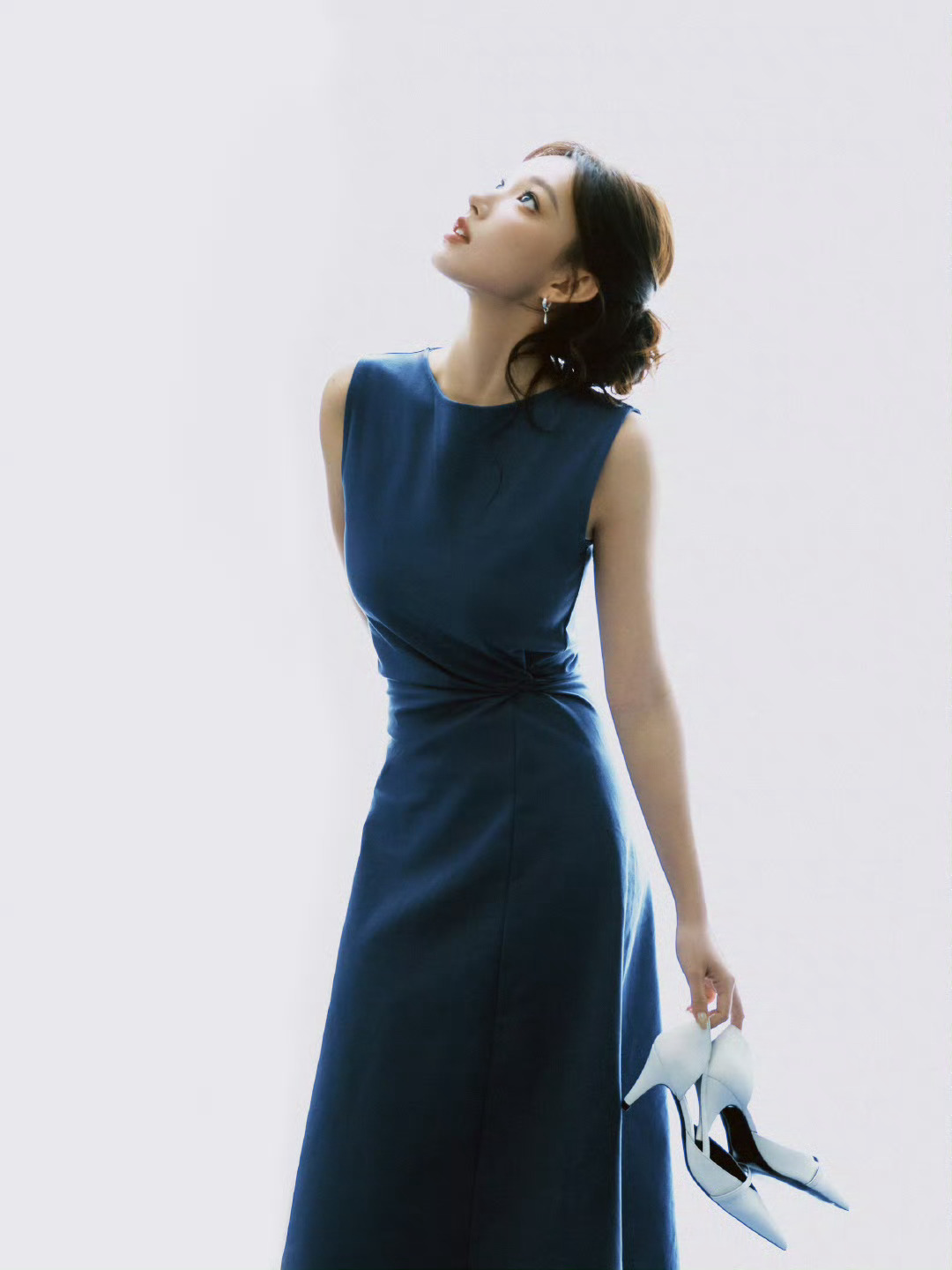程潇雾蓝姿态蓝色连衣裙勾勒曼妙身姿,程潇气质如布偶猫般空灵,温柔又疏离,太绝了。