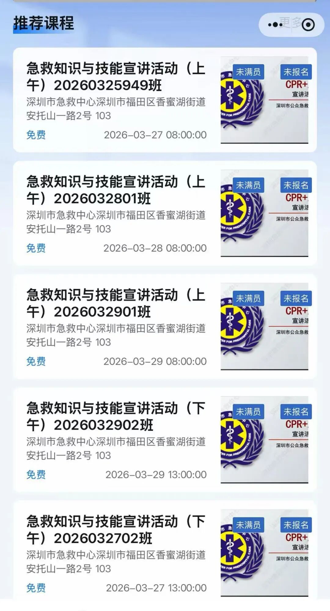本次宣教活动总共设置5个班次,市民任选其中一个学习即可。没时间参加学习的朋友也没有关系,在“深圳急救”微信公众号对话框私信“口袋书”,即可获取随时随地方便学习的急救知识口袋书。