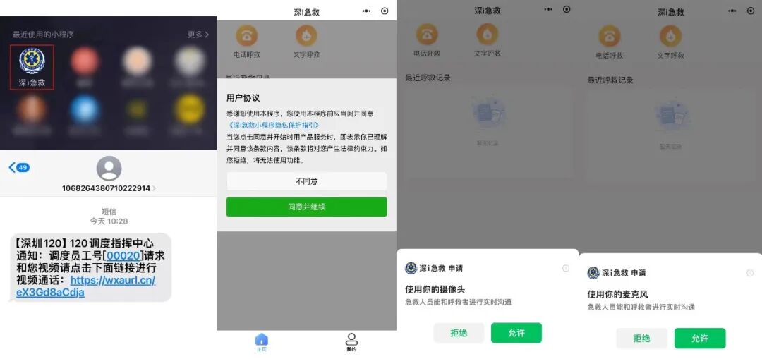 2.点击链接自动跳转至“深i急救”小程序后,点“同意并继续”。