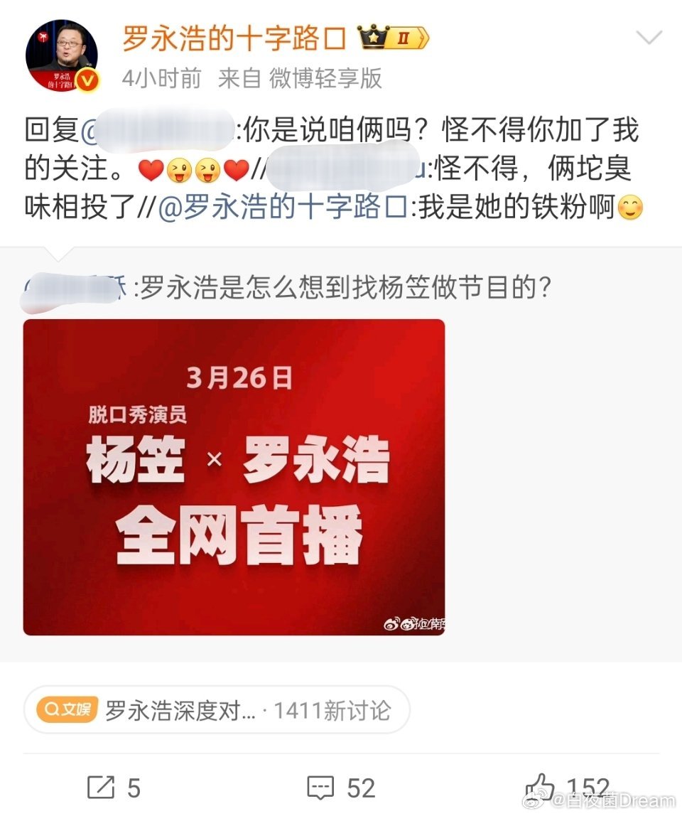 罗永浩深度对话杨笠罗永浩和杨笠做节目,不怕掉粉吗?刚刚看到,一个喜欢了10年的铁粉也绷不住了