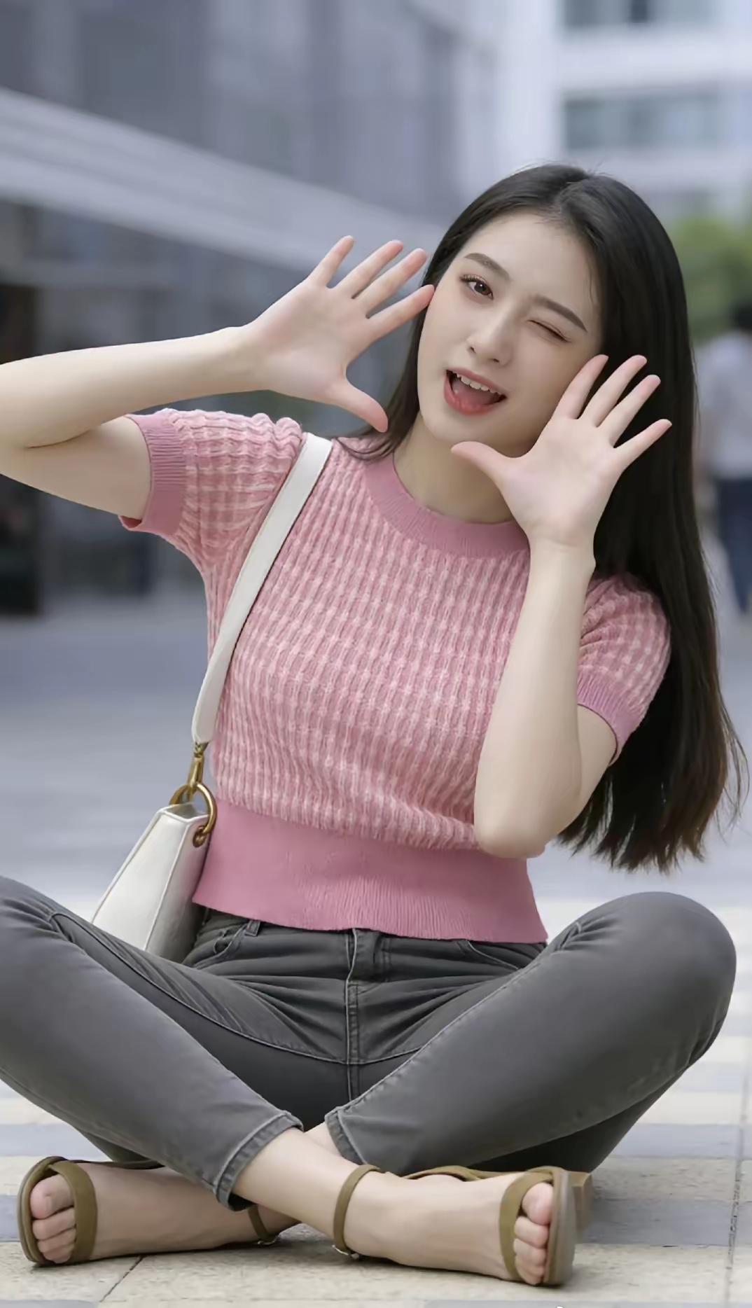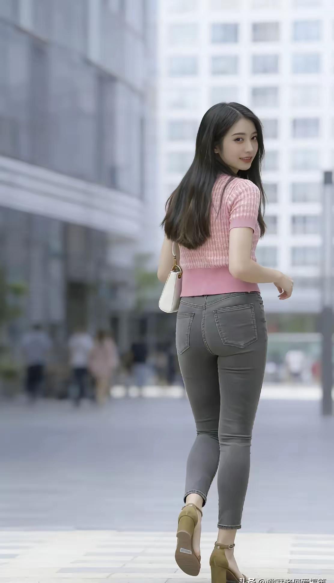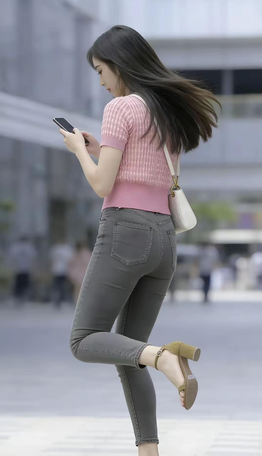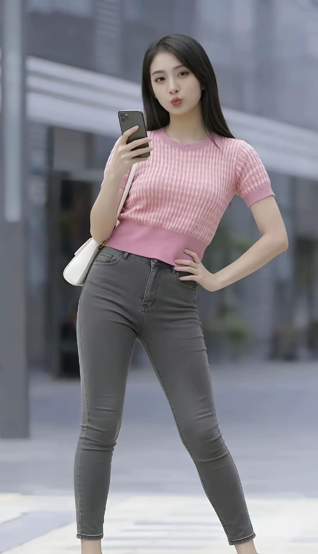 元气少女穿搭指南💕粉色上衣+灰色牛仔裤,轻松出街!街拍